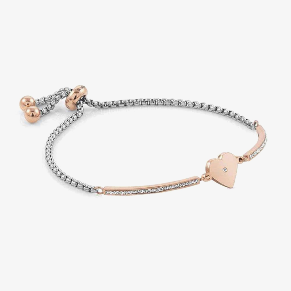 From the Milleluci collection, a subtle and stylish half bangle toggle bracelet crafted from stainless steel. Featuring a cubic zirconia set rose gold finish heart motif & pavé set half bangle with a belcher style bracelet & toggle fastening.