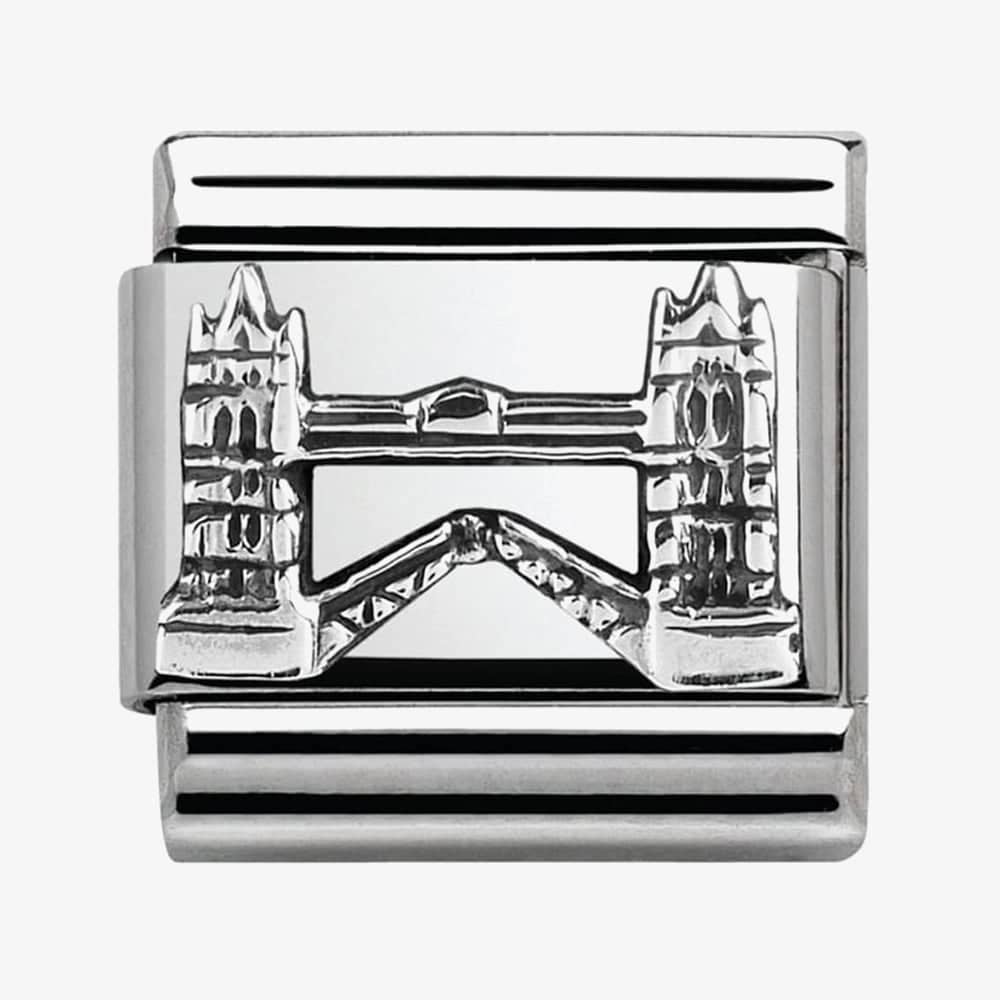 A phenomenal piece presented to you by Nomination. Forged from an amazing amalgamation of sterling silver and stainless steel, the focal point of the link is the intricately detailed interpretation of the wonderful and historic Tower Bridge. As a commanding and grand landmark that has stood for more than a century, this charm is the perfect way to remember your own or a loved one’s visit; whilst adding a unique and fashionable edge to your bracelet.