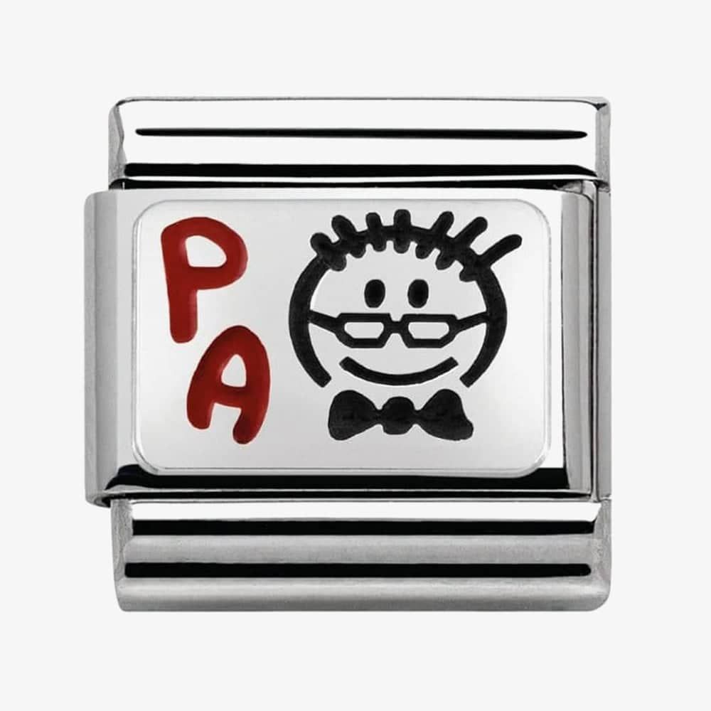 This pretty Nomination charm features black enamel detailing of a man and red letters PA. Set in stainless steel material for easy fitting onto your Nomination Bracelet.
