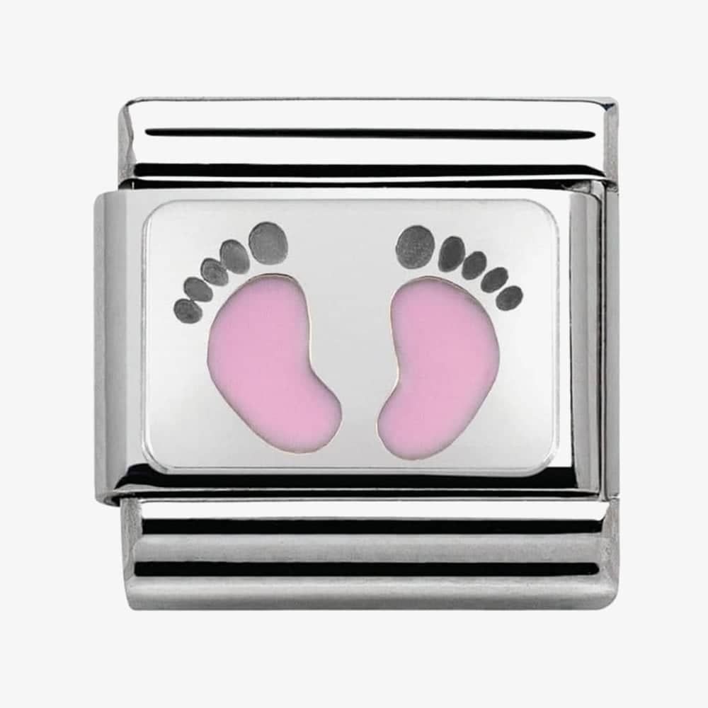Featuring a simple set of small pink coloured enamel feet this design comes built into a stainless steel charm suitable for a Nomination bracelet.