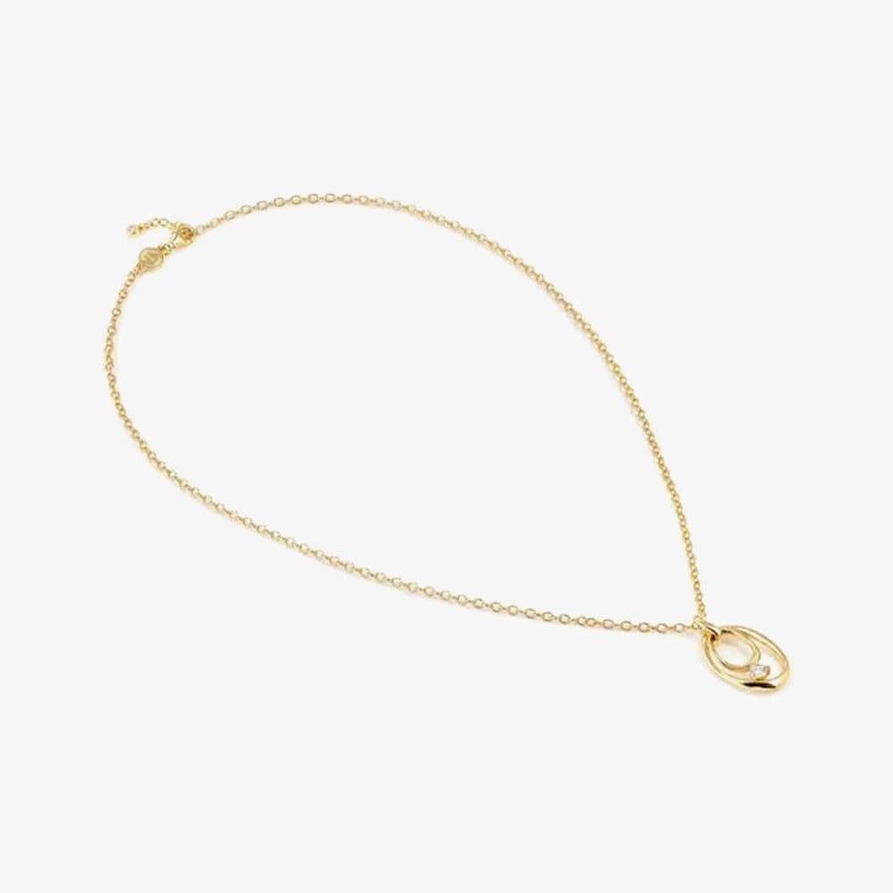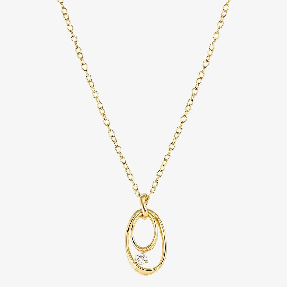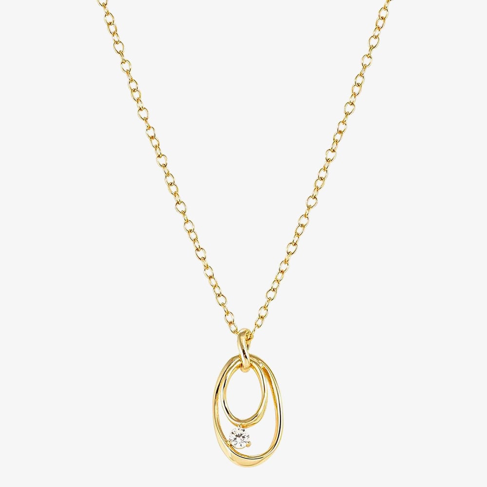 Crafted from gold tone sterling silver, this Nomination necklace from the My Rebel Art collection has a free-flowing design of abstract shaped ovals in a warm, sunshine hue. Paired with a sparkling white cubic zirconia and suspended from a trace chain, this pendant necklace is perfect for adding an artistic flair to your look. Add to your own collection or gift a loved one.