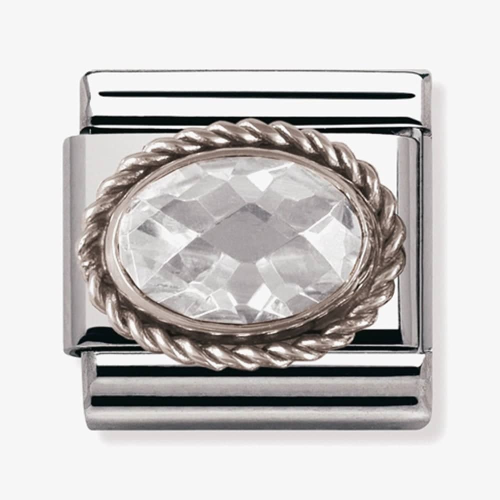 Give your Nomination bracelet another dimension with the stunning Ornate Set Oval Charm from the Classic Composable range. The stainless steel base link features a beautifully faceted cubic zirconia with an intricately detailed ornate setting, perfect for creating a unique style statement.