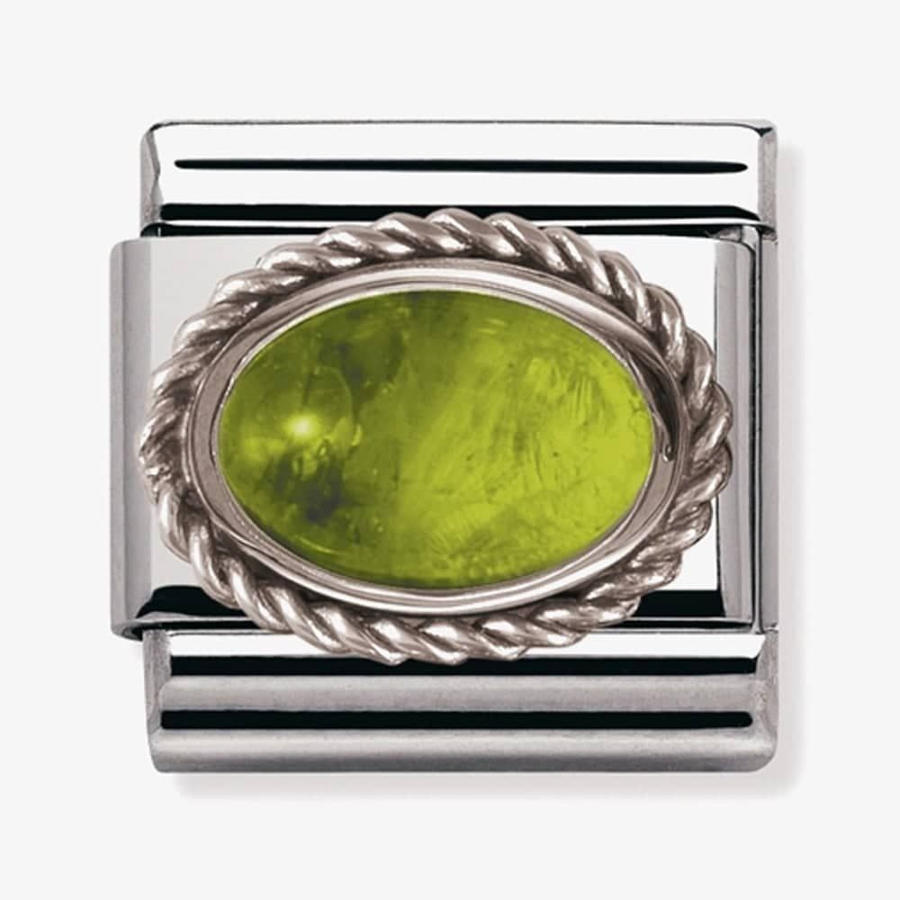 Add to your classic composable collection with this fashionable birthstone charm from Nomination, a meaningful gift for a loved one born in August. The pretty oval peridot features a stylish ornate setting and radiates a gorgeous green hue, perfect for bringing lively colour to a collection.
