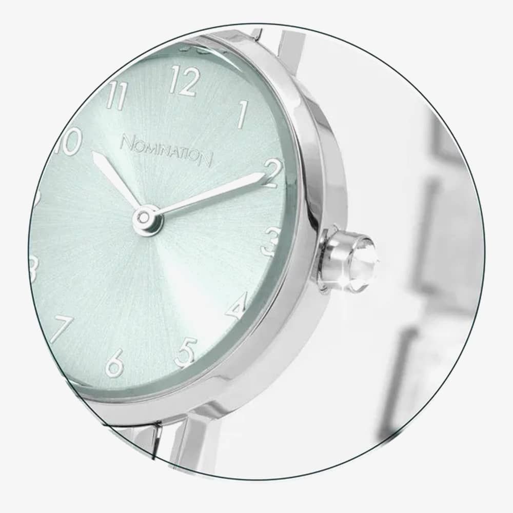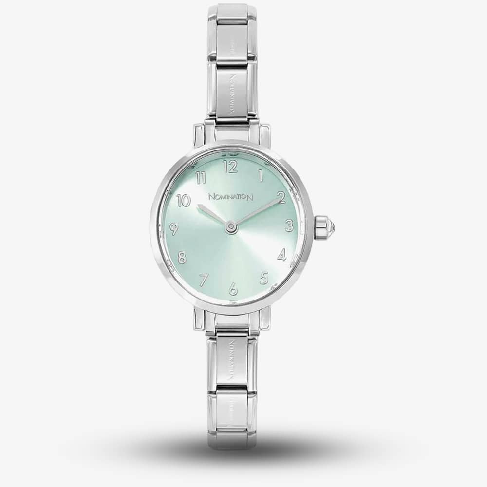 Elegance and sophistication come together in this exquisite ladies' silver watch. Its graceful oval case and a shimmering sage green sunray dial make it the perfect accessory for any special occasion. This timepiece is a beautiful blend of style and function, designed to adorn your wrist with timeless charm.