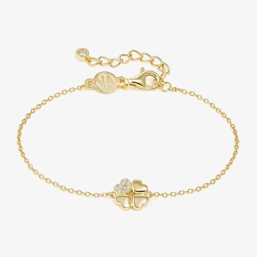Delicate and charming, this gold-tone bracelet from Nomination’s Petit Sparkle collection showcases a four-leaf clover pendant with one petal adorned in sparkling white cubic zirconia stones. With an adjustable length and secure lobster clasp, it combines elegance with a comfortable, customisable fit.