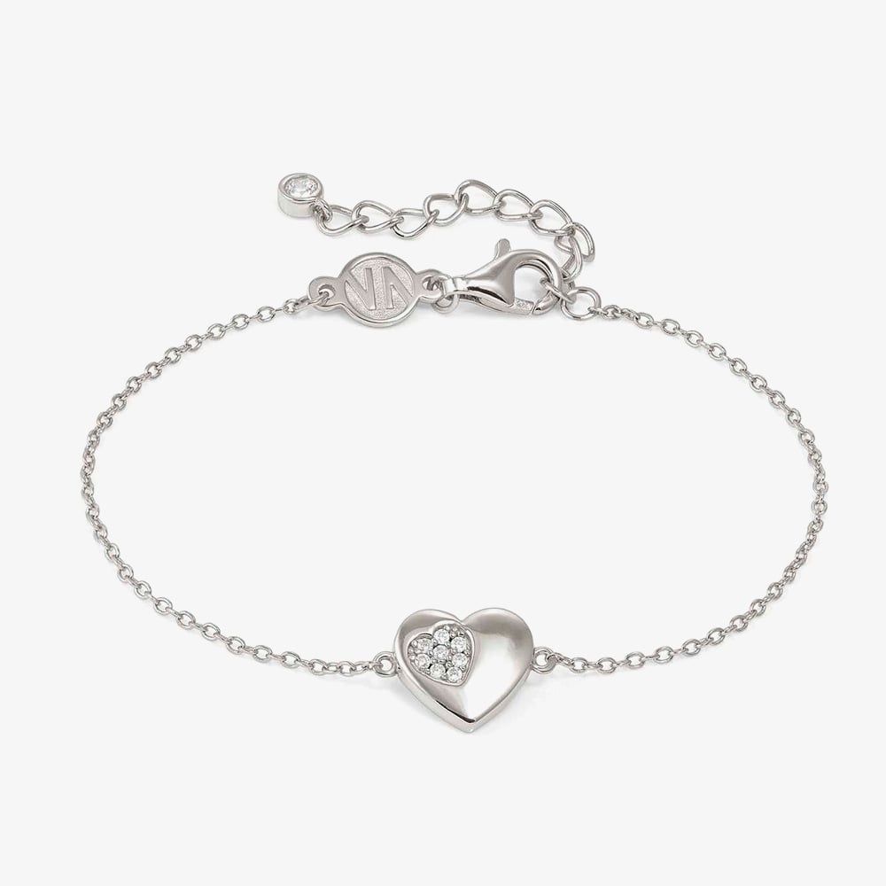 Graceful and charming, this sterling silver bracelet from Nomination’s Petit Sparkle collection showcases a heart pendant featuring a smaller inner heart set with dazzling white cubic zirconia stones. With an adjustable length and lobster clasp, it offers both style and a perfect fit for everyday wear.
