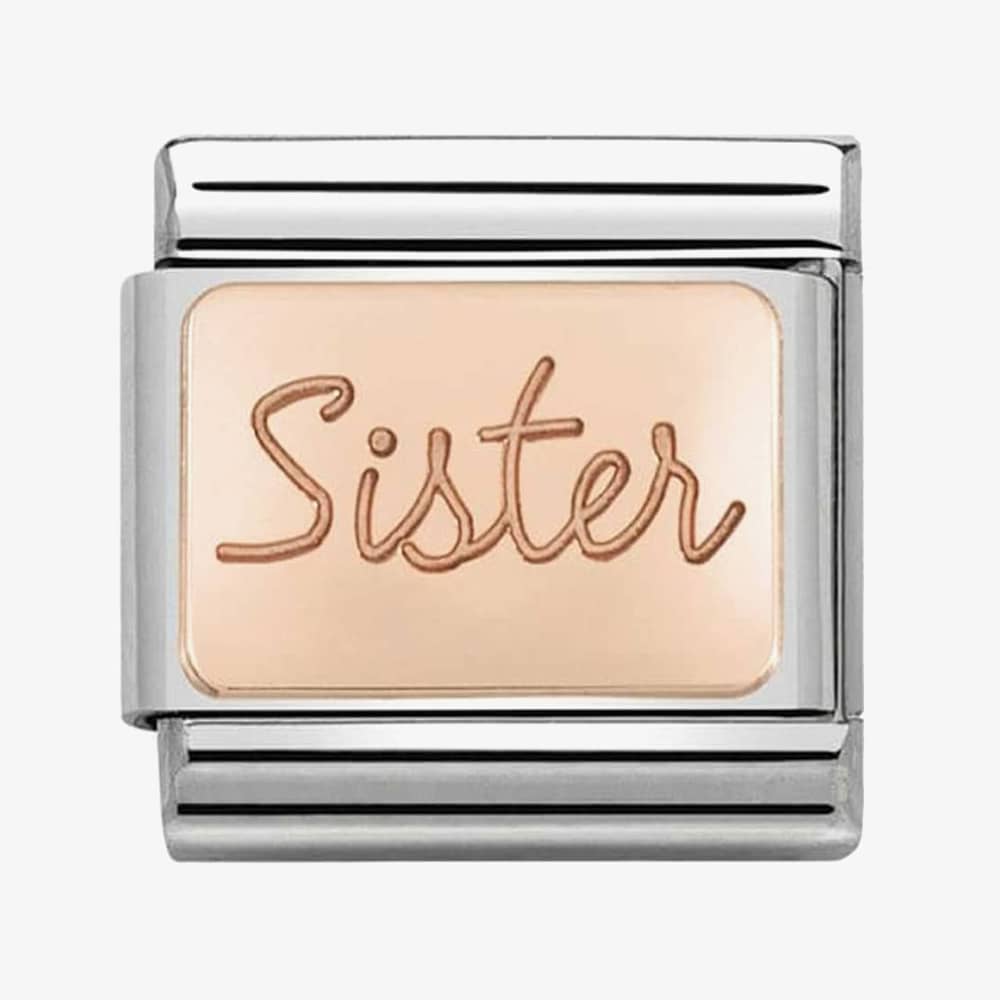 Gift this gorgeous charm to your Sister for her birthday or Christmas. Comes crafted from 9ct Rose Gold steel and fits any classic composable Nomination bracelet.
