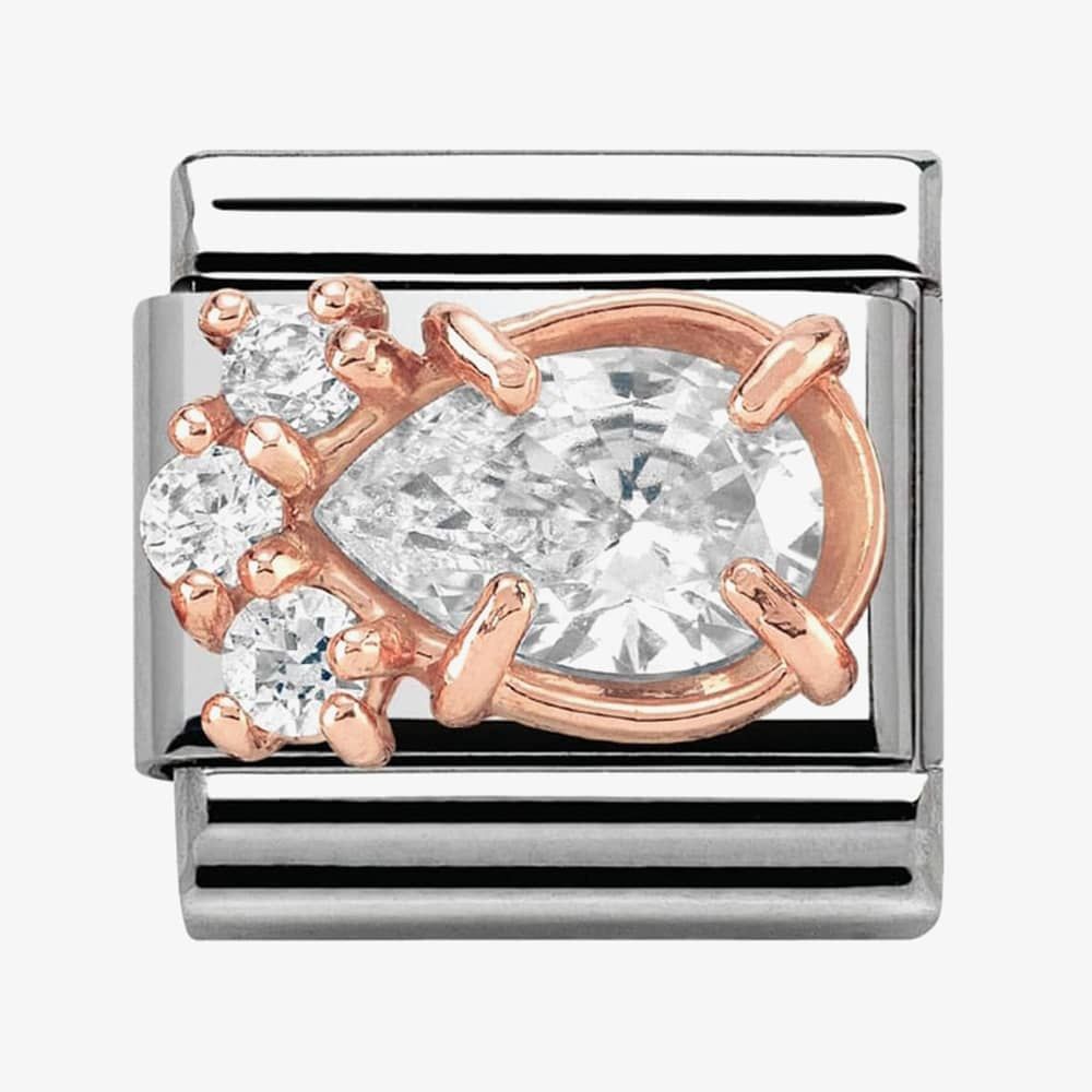 Add to your collection of favourite Nomination charms with this gorgeous stainless steel charm finished with a beautiful 9ct Rose Gold design, set with sparkling Cubic Zirconia. A wonderful charm perfect for creating a combination to truly suit your style.