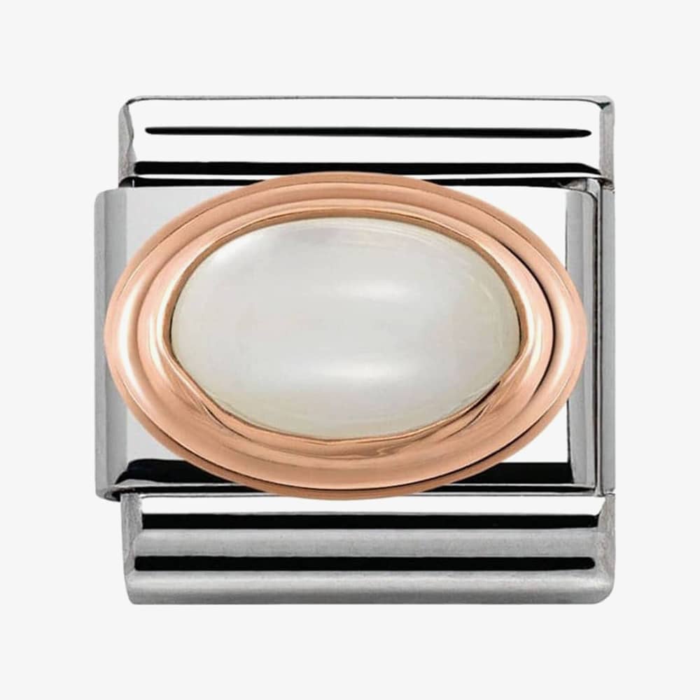 Adorn your favourite Nomination bracelet with this gorgeous stainless steel charm featuring a beautiful 9ct rose gold plated design finished with a white mother of pearl stone. A wonderful charm perfect for creating a combination to truly suit your style.