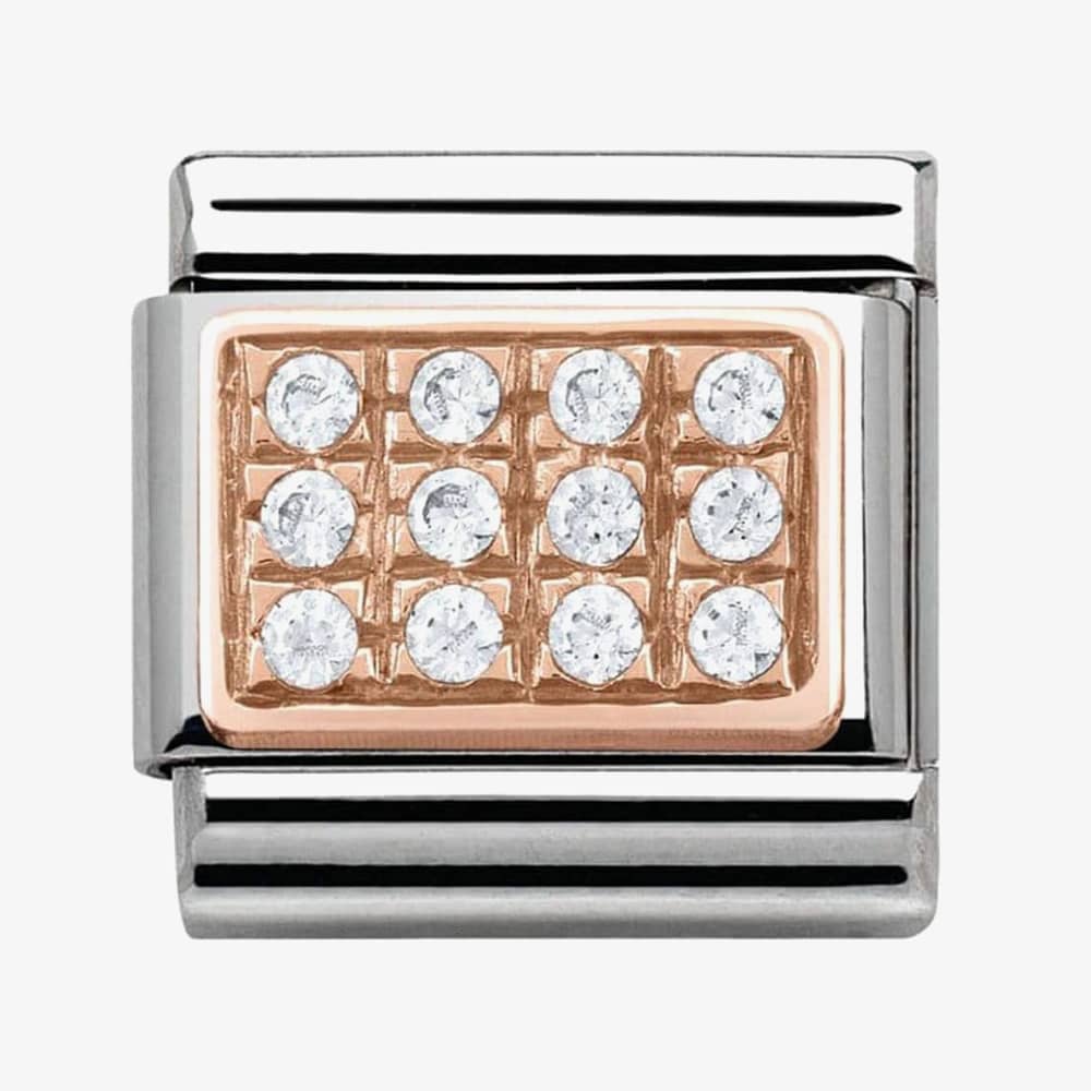 Adorn your favourite Nomination bracelet with this gorgeous stainless steel charm finished with a beautiful 9ct Rose Gold design, set with sparkling Cubic Zirconia. A wonderful charm perfect for creating a combination to truly suit your style.