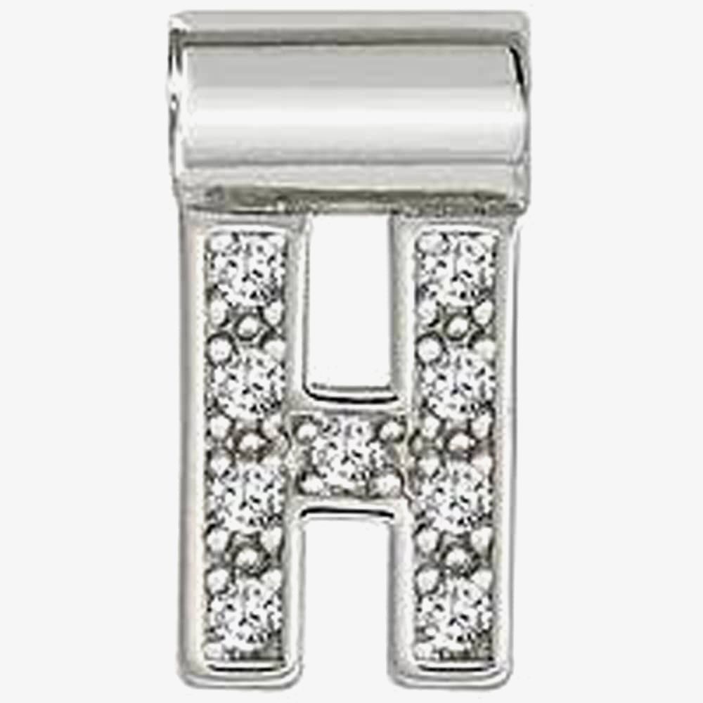 A stylishly crafted Nomination pendant which consists of the letter H crafted from sterling silver material. Adorned with a collection of cubic zirconia stones to add extra sparkle. Add this to your Nomination necklace using the barrel which threads on to a chain. Sterling silver items are rhodium treated to prevent tarnishing.
