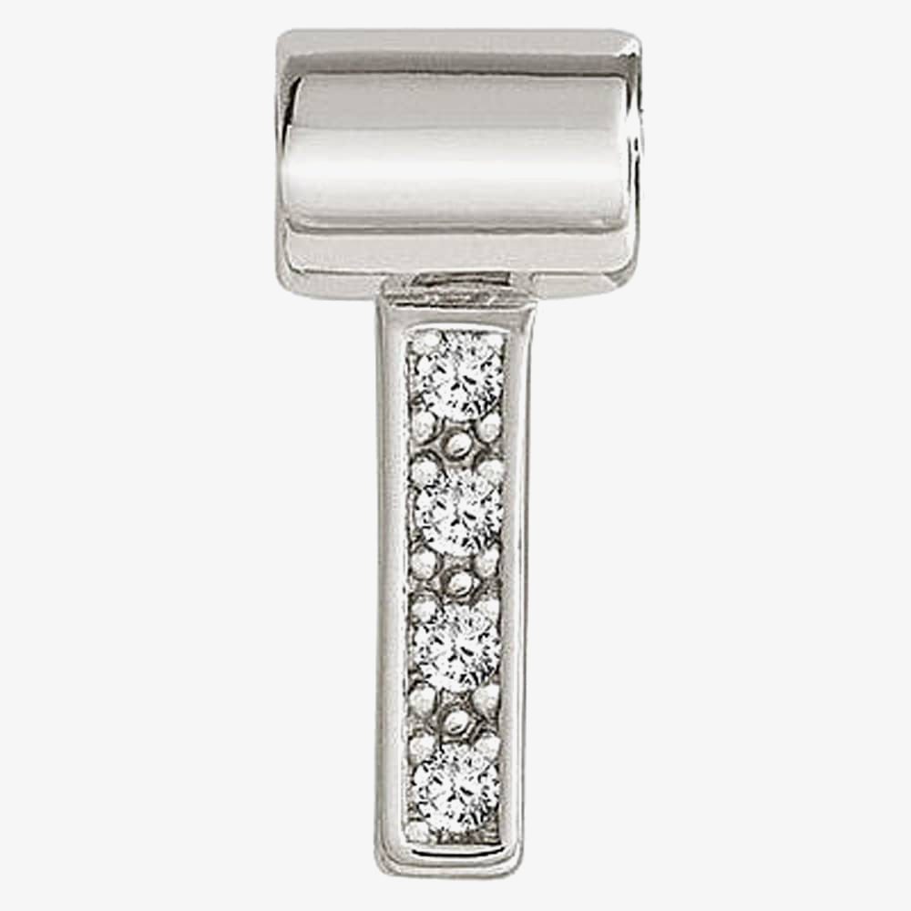 A stylishly crafted Nomination pendant which consists of the letter I crafted from sterling silver material. Adorned with a collection of cubic zirconia stones to add extra sparkle. Add this to your Nomination necklace using the barrel which threads on to a chain. Sterling silver items are rhodium treated to prevent tarnishing.