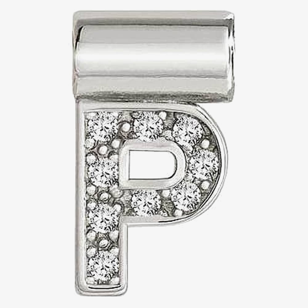 A stylishly crafted Nomination pendant which consists of the letter P crafted from sterling silver material. Adorned with a collection of cubic zirconia stones to add extra sparkle. Add this to your Nomination necklace using the barrel which threads on to a chain. Sterling silver items are rhodium treated to prevent tarnishing.