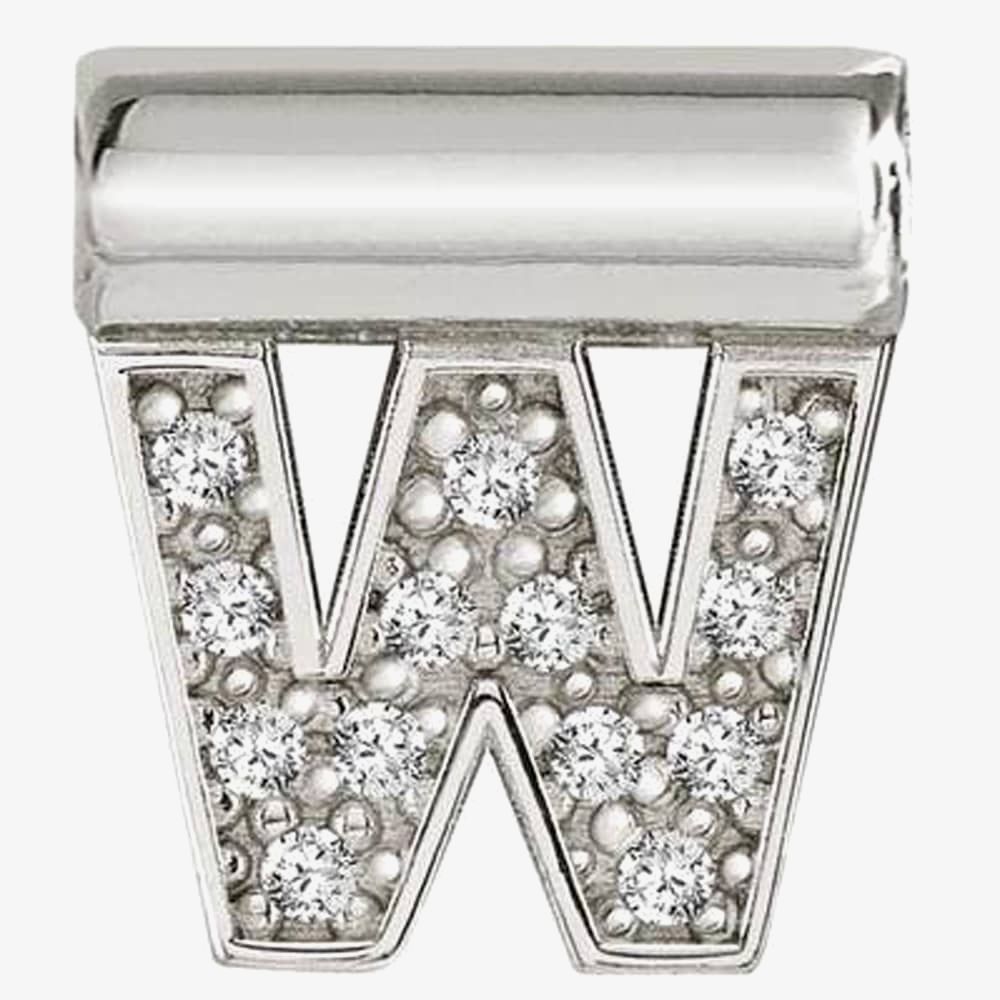 A stylishly crafted Nomination pendant which consists of the letter W crafted from sterling silver material. Adorned with a collection of cubic zirconia stones to add extra sparkle. Add this to your Nomination necklace using the barrel which threads on to a chain. Sterling silver items are rhodium treated to prevent tarnishing.