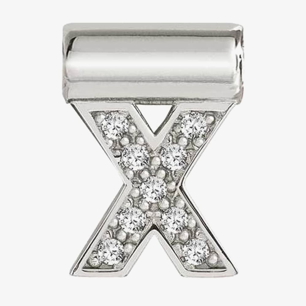 A stylishly crafted Nomination pendant which consists of the letter X crafted from sterling silver material. Adorned with a collection of cubic zirconia stones to add extra sparkle. Add this to your Nomination necklace using the barrel which threads on to a chain. Sterling silver items are rhodium treated to prevent tarnishing.