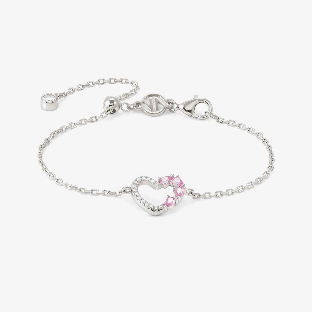 A beautiful Nomination bracelet crafted from sterling silver, featuring a delicate heart design adorned with sparkling multi-cut cubic zirconia stones in elegant pink and white hues. A timeless symbol of love and elegance.