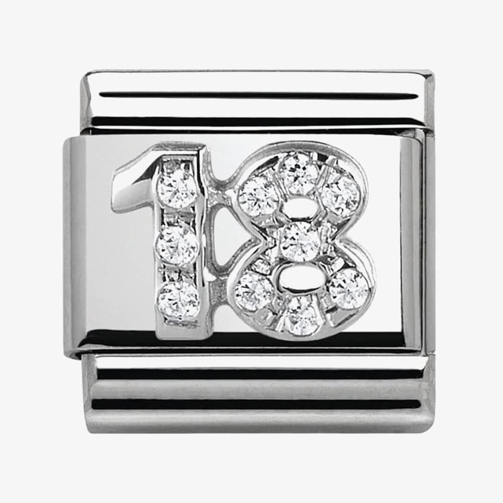 This gorgeous stainless steel charm is inlaid with shimmering cubic zirconia pavé and is perfect for marking a special birthday.