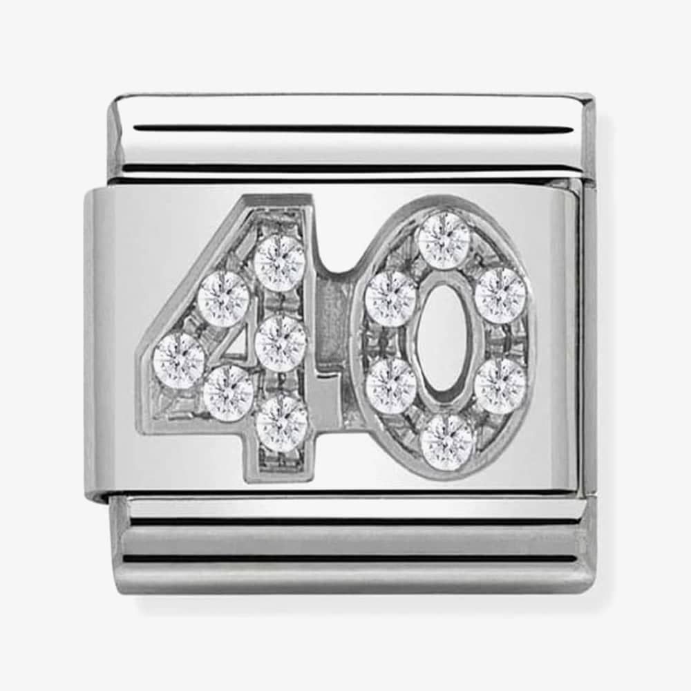This stylishly crafted Nomination charm features the number 40 written in bold detailing along with a collection of sparkling stones.