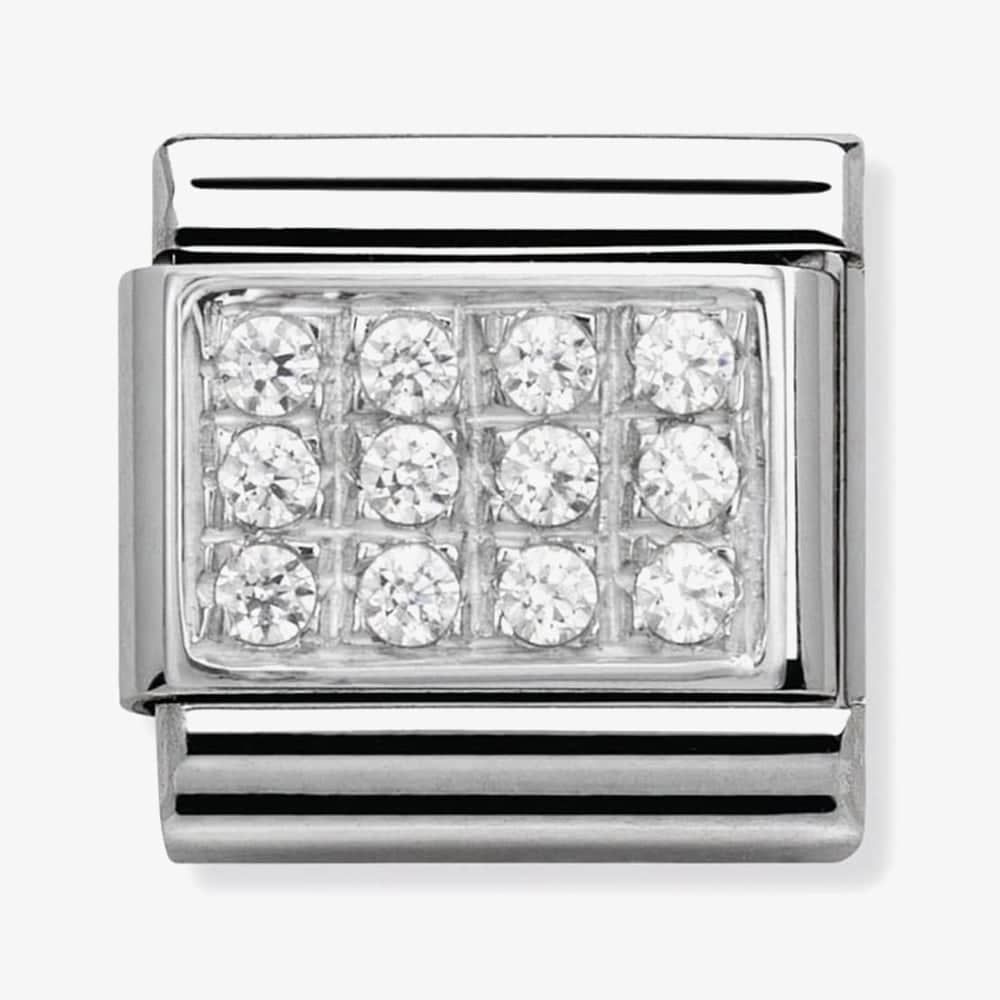 This Nomination charm features an abundance of white cubic zirconia, set on the steel link. Sure to make a great addition to your outfit.