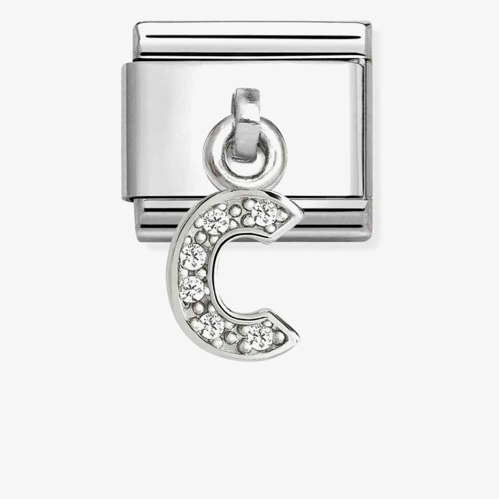 Showcase your individuality with the Nomination Silvershine Charm featuring a dangling letter "C" embellished with sparkling white cubic zirconia. Crafted from stainless steel and sterling silver, this elegant charm makes a stylish addition to your bracelet and a thoughtful personalised gift for any occasion.