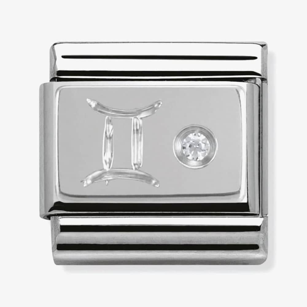 Simplistic yet powerful, this stainless steel charm from Nomination carries the astrological symbol for Gemini and a clear cubic zirconia stone to add the shine to the silver tone.