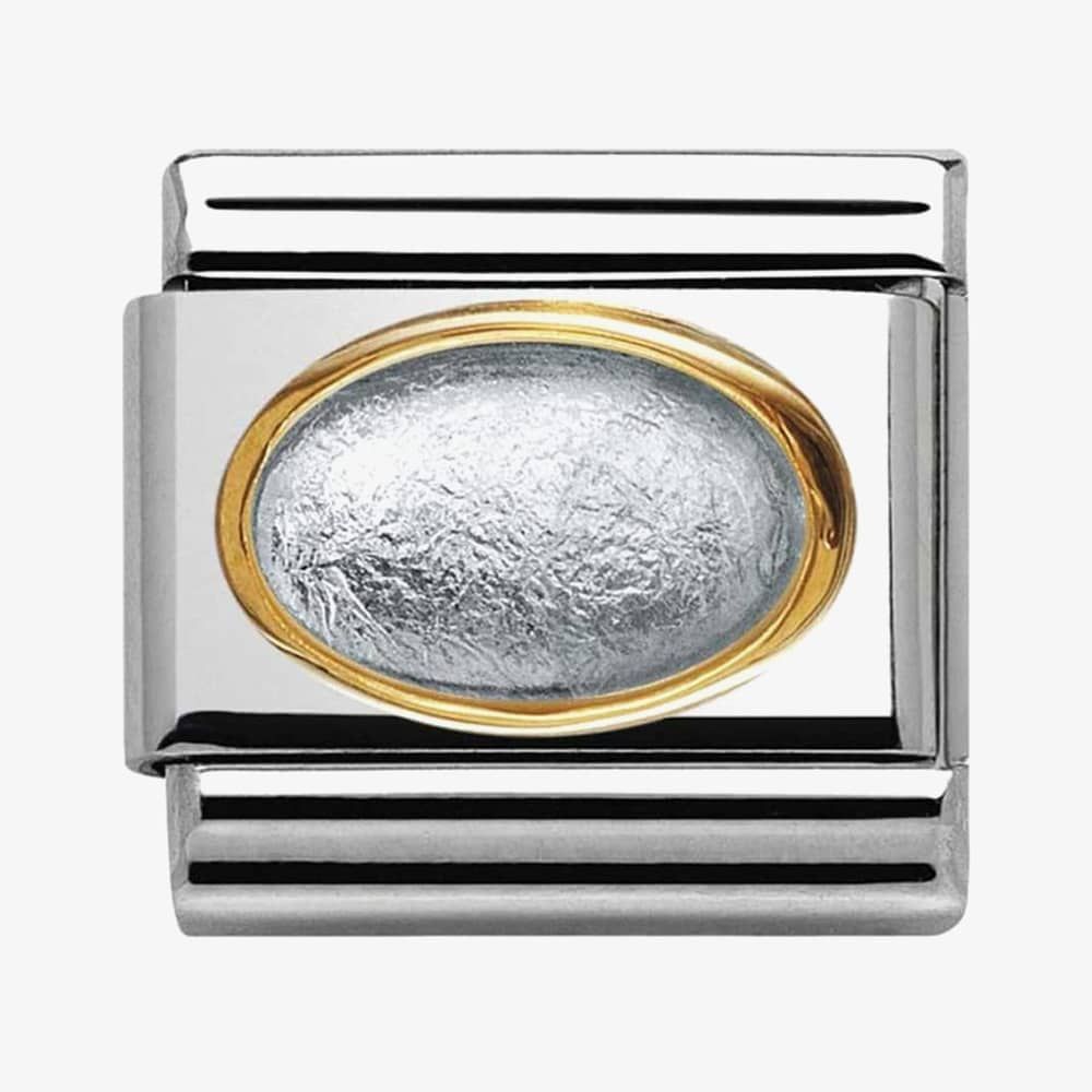 Sublime stainless steel, divine 18 carat gold, and a shimmering silver rock crystal combine to create this awe inspiring link. As a highly fashionable and glamorous piece, this is a great addition to any bracelet, and a flawless representation of the unique and eye catching items the brand is famous for, creating a huge variety of links and jewellery to suite everyone. Start your Nomination bracelet or add another link to yours today.
