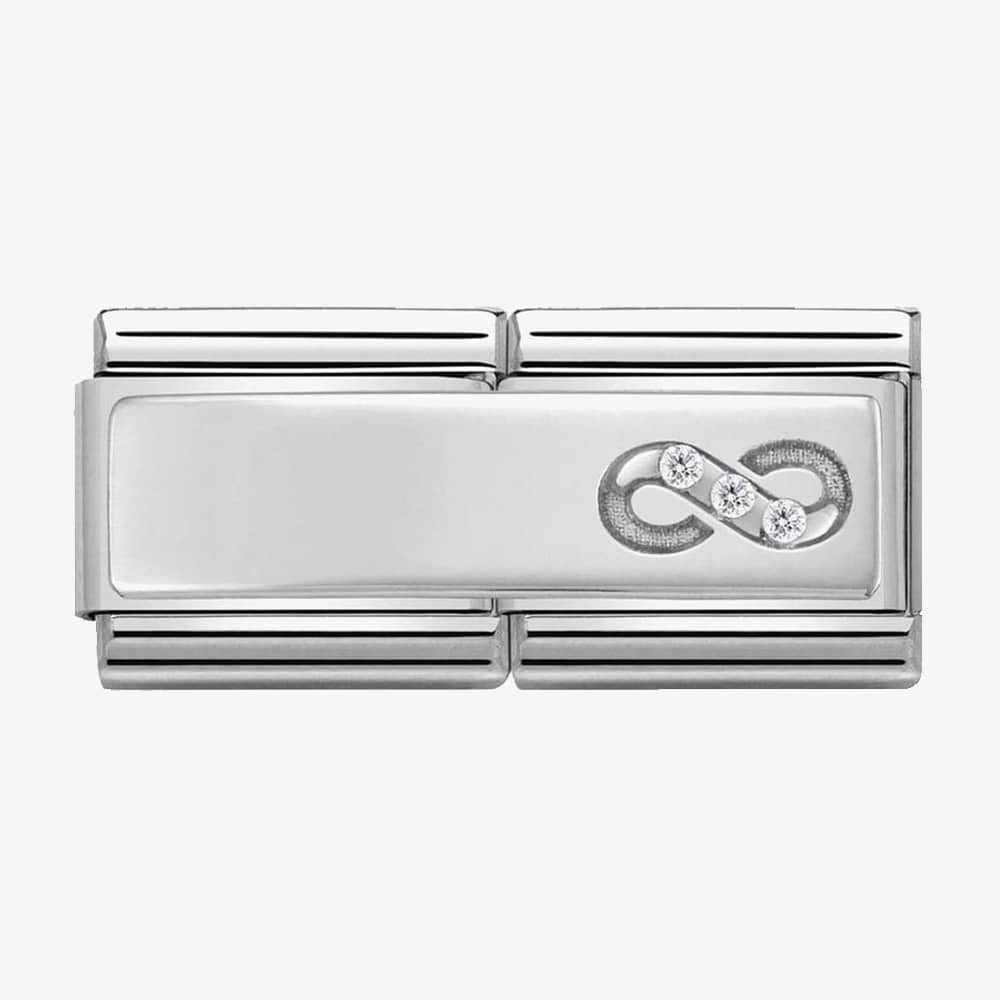 Add a hint of shine to your treasured charm bracelet with this wonderful charm. Beautifully crafted in stainless steel, the charm features an engraved infinity symbol with cubic zirconia accents. The charm can be added to any Nomination classic composable bracelet.