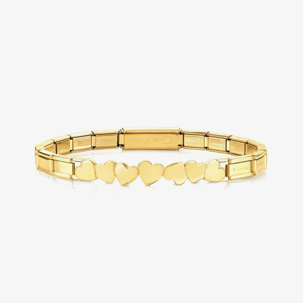Crafted from a high stainless steel material this gorgeous gold coloured Smarty bracelet features a collection of adoring love heart designs all connected in a row. This also makes the perfect gift for any loved one.