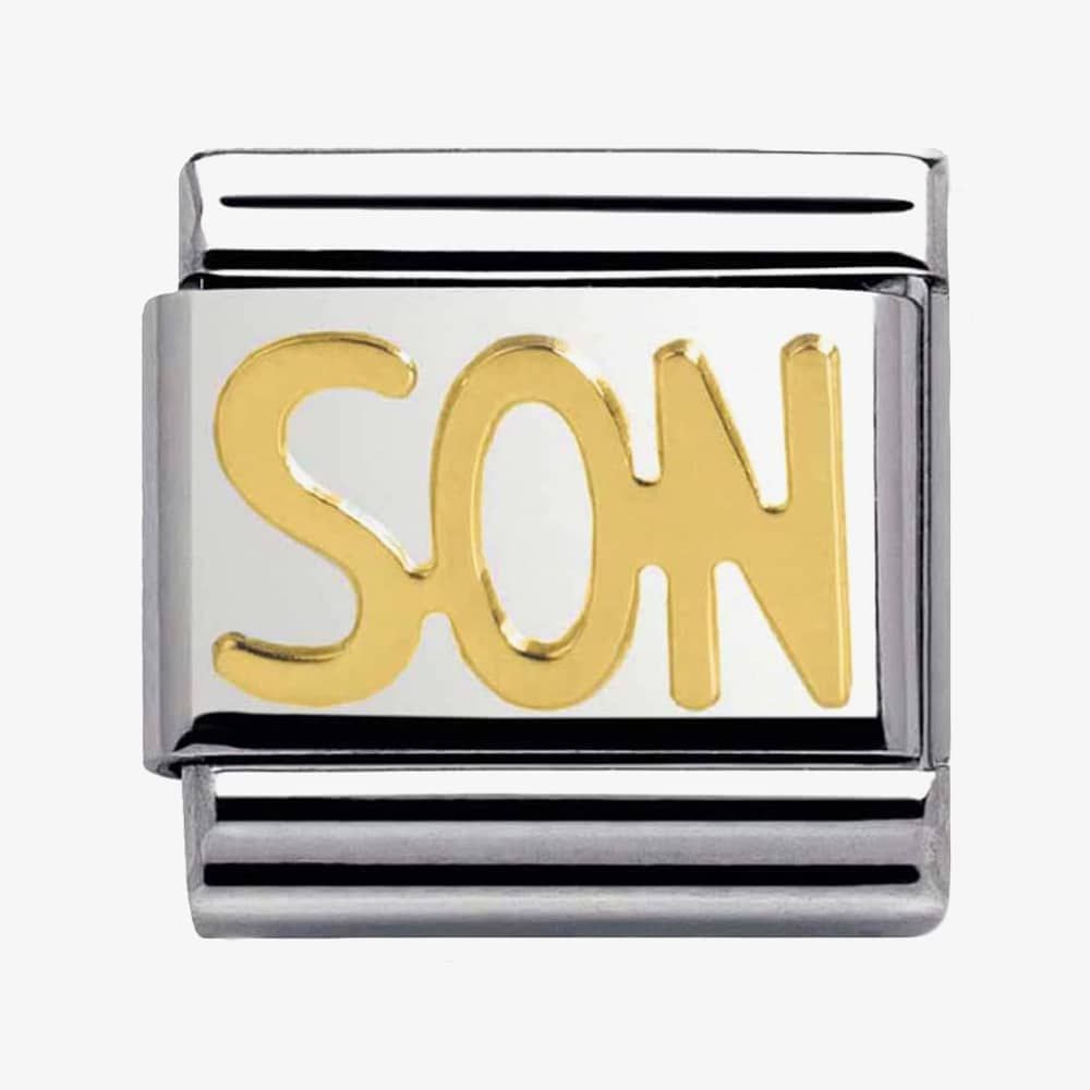 Direct from the Nomination writings collection comes this stainless steel charm featuring the word SON written in bold gold detailing. Making this a wonderful birthday present to show your child how much you adore them.