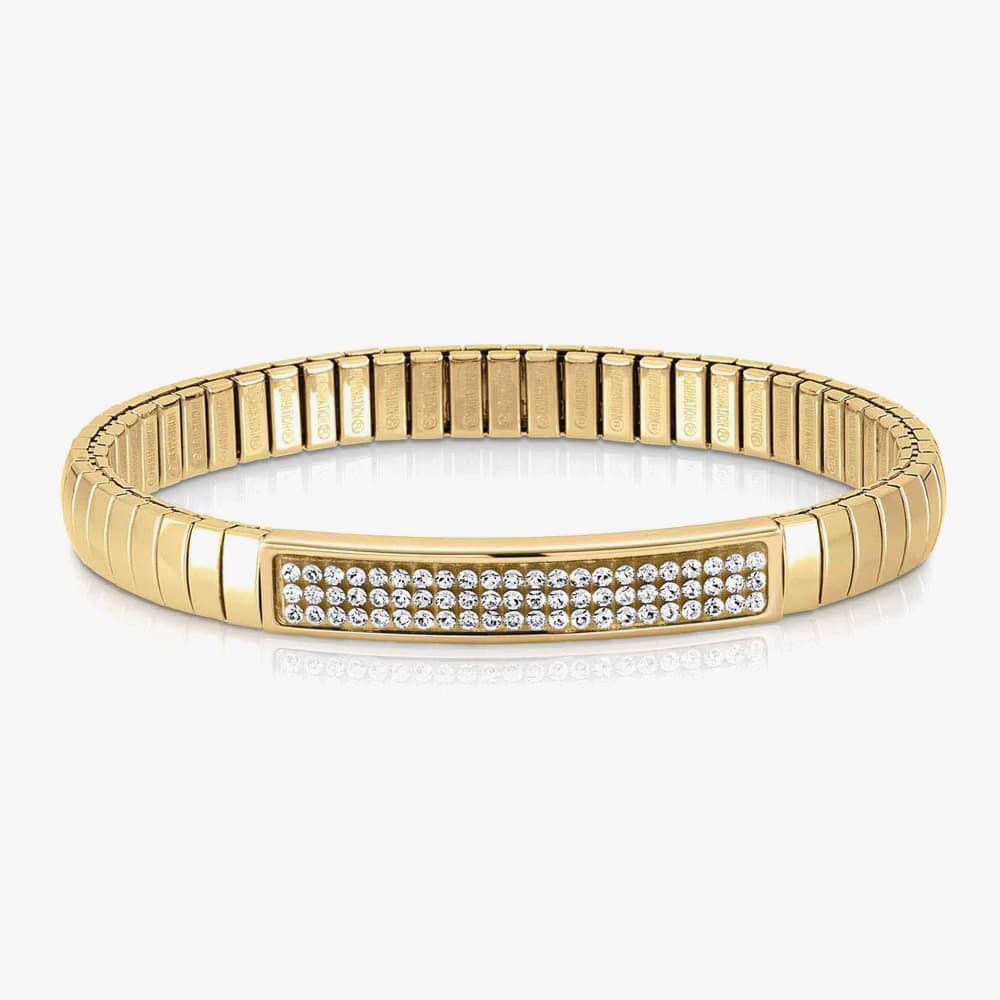 A beautiful looking bracelet made from gold tone steel in an adjustable link fastening with sparkling Swarovski crystal.