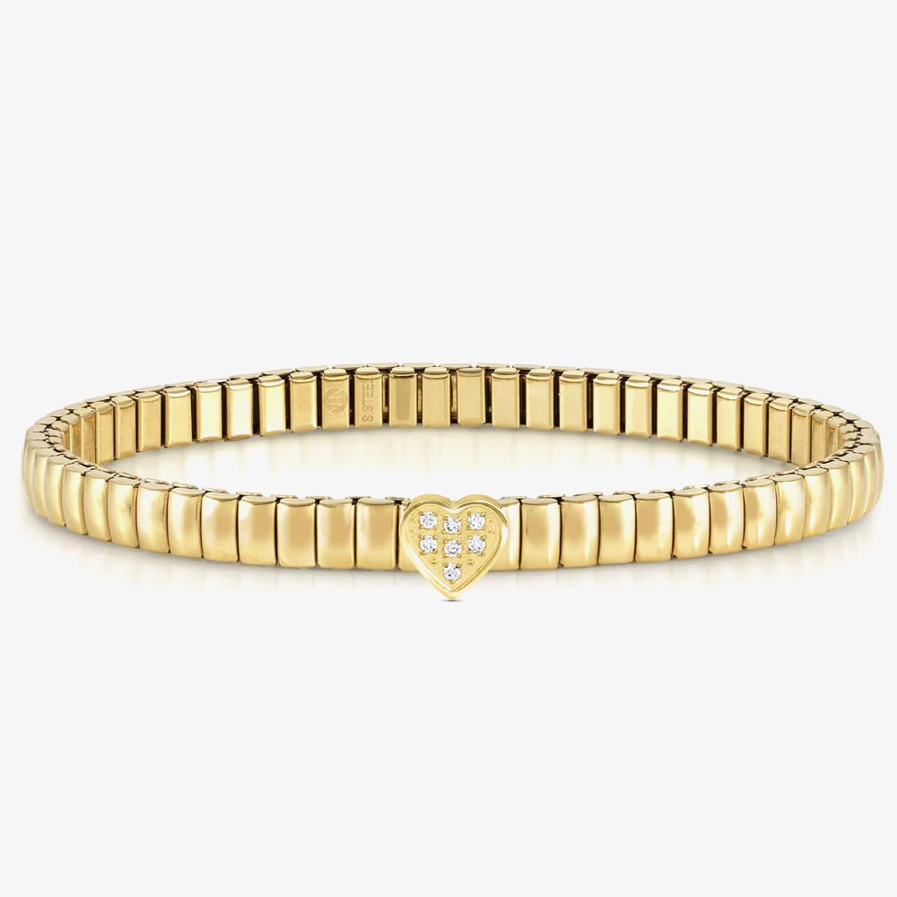 The Nomination XTE Life Heart Bracelet 046011/004 features a yellow gold finish stainless-steel 0.5 cm wide expandable bracelet design with a sparkling cubic zirconia set heart motif in the centre. This bracelet is ideal for layering and stacking with other Nomination bracelets to create your own unique look.
