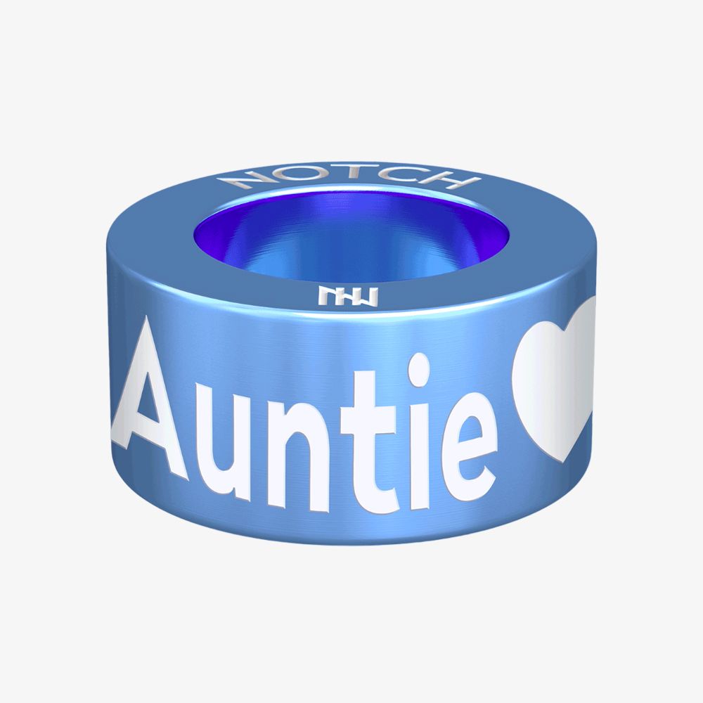 The engraved bracelet charm featuring the inscription "Auntie (heart)," is exquisite and sentimental intended to be worn as a cherished addition to a bracelet. This charm serves as a heartfelt homage to aunties and can be a treasured keepsake or a thoughtful gift.