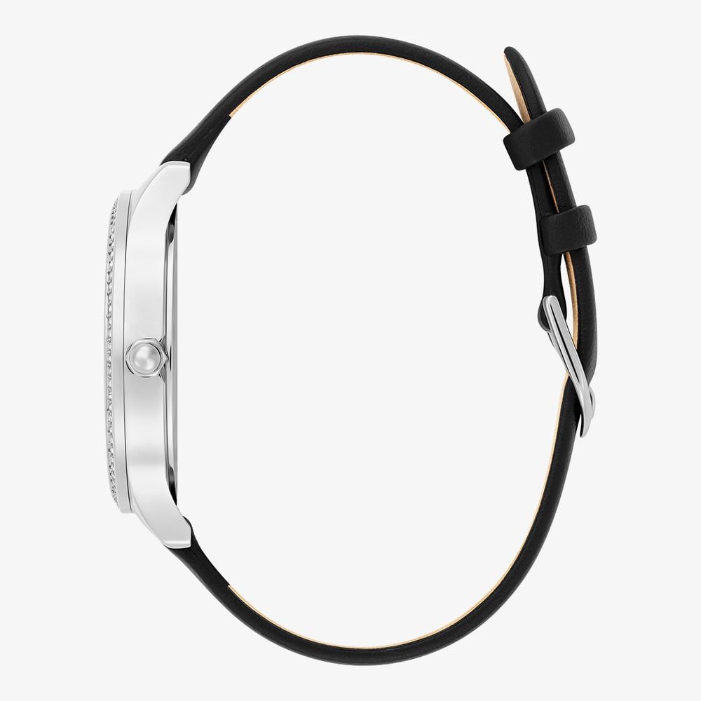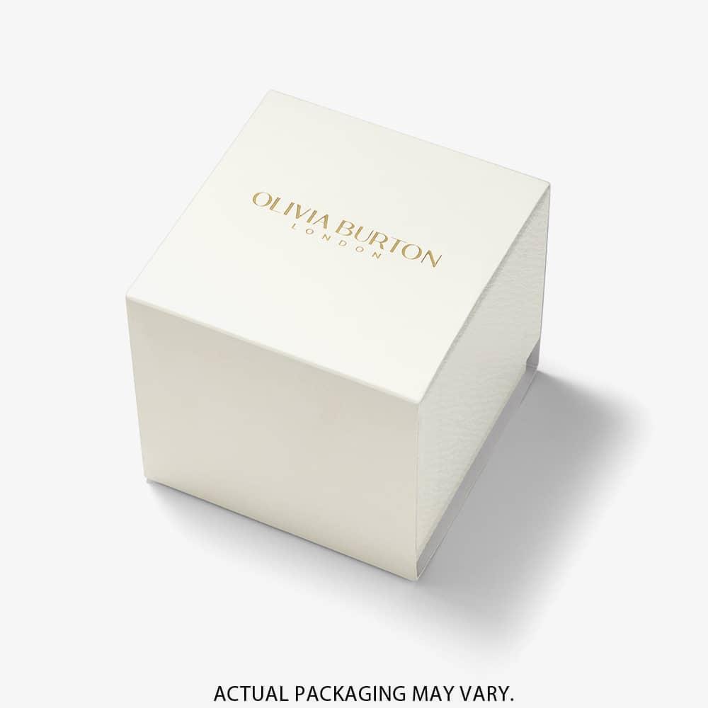 The Olivia Burton Beaulieu watch combines timeless elegance with modern sparkle, featuring a sleek black leather strap and a Raven Black textured dial. A radiant burst of pavé stones surrounds a marquise-cut crystal at the center, while the crystal-set bezel adds extra shimmer, making it a perfect statement piece for any occasion.