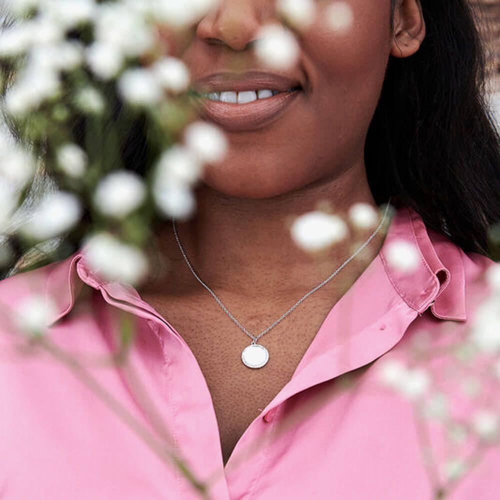 The Bejewelled Classics Disc Silver Tone Necklace OBJCON76 is bought to us from Olivia Burton. This rhodium plated, silver tone necklace features a disc pendant which is embellished with sparkling cubic zirconia and features the classic Olivia Burton engraving.