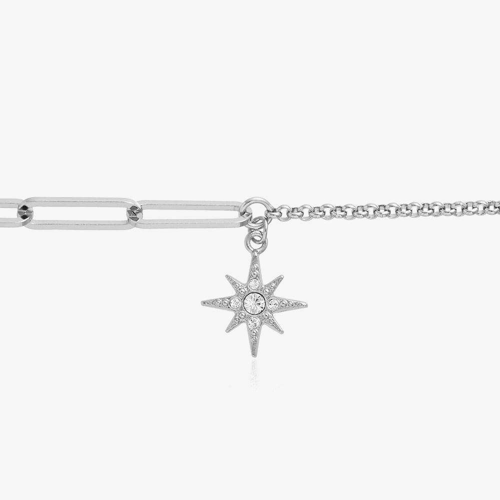 A guiding light for travellers, the North Star is a powerful symbol of hope, light and destiny. The Olivia Burton Celestial North Star Mismatch Silver Bracelet features two mismatched chains held together by a crystal-embellished North Star charm - as though it was written in the stars themselves. Whether you look to the stars for guidance or admire the celestial aesthetic, this bracelet promises to align your stacks every day.