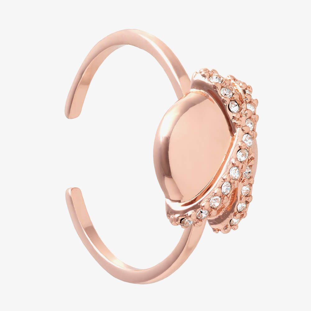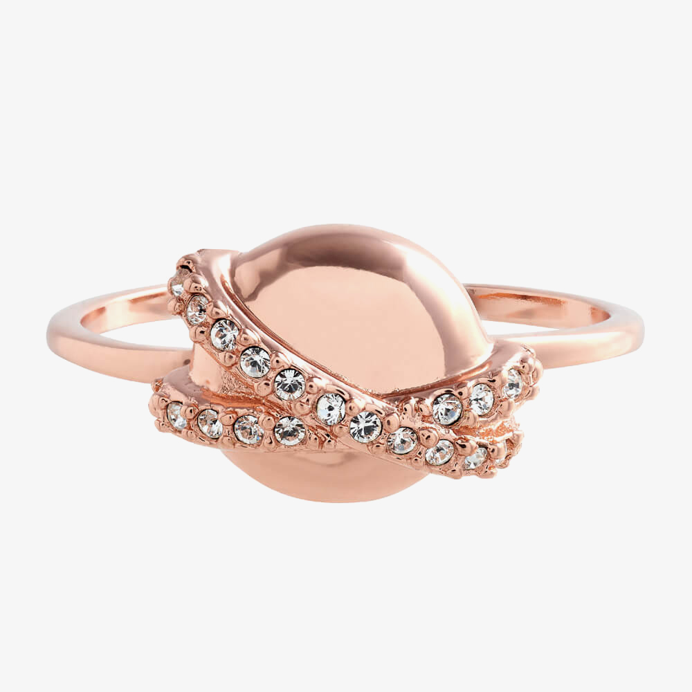 The Celestial Rose Gold-Tone Planet Adjustable Ring OBJ16CLR23 is bought to us from Olivia Burton. This adjustable 18k rose gold-plated ring features a planet design with sparkling crystal detailing.