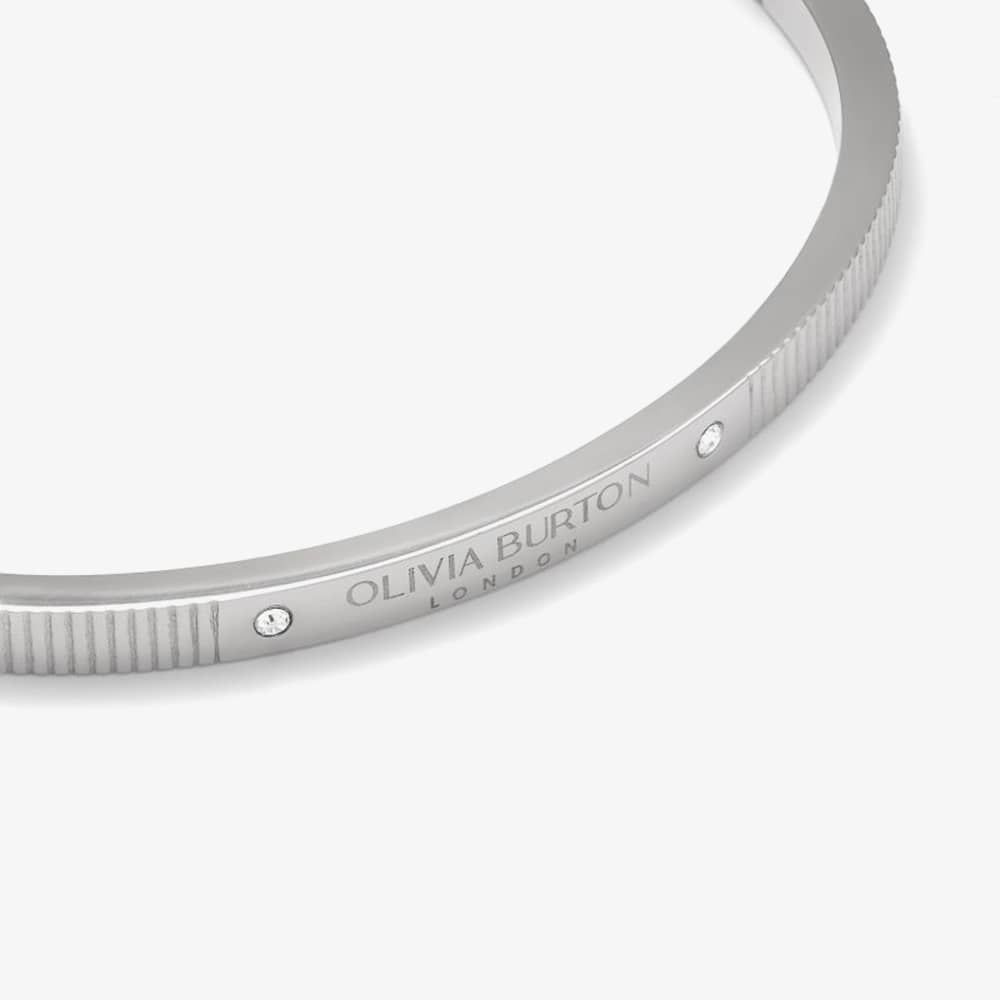 Elegantly simple, this contemporary stainless-steel bangle can be effortlessly worn from morning to night, throughout every season. With the distinctive Olivia Burton branding and two crystal gemstones, it’s a timeless accessory for every day.