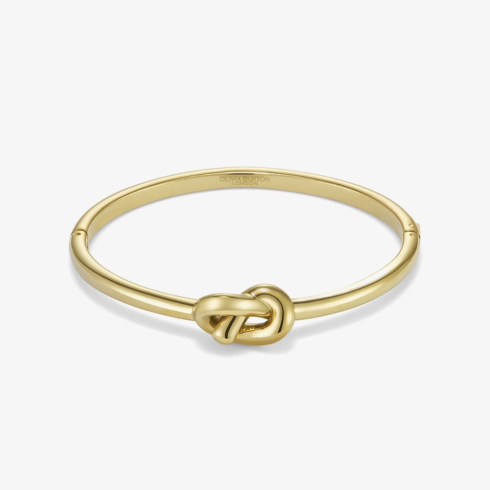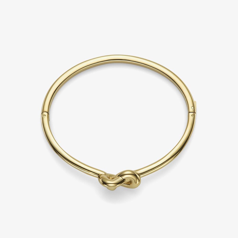 This elegant bangle from the Classic Collection showcases a beautifully crafted lover’s knot in polished gold-plated stainless steel, offering a sophisticated and timeless touch to any outfit.