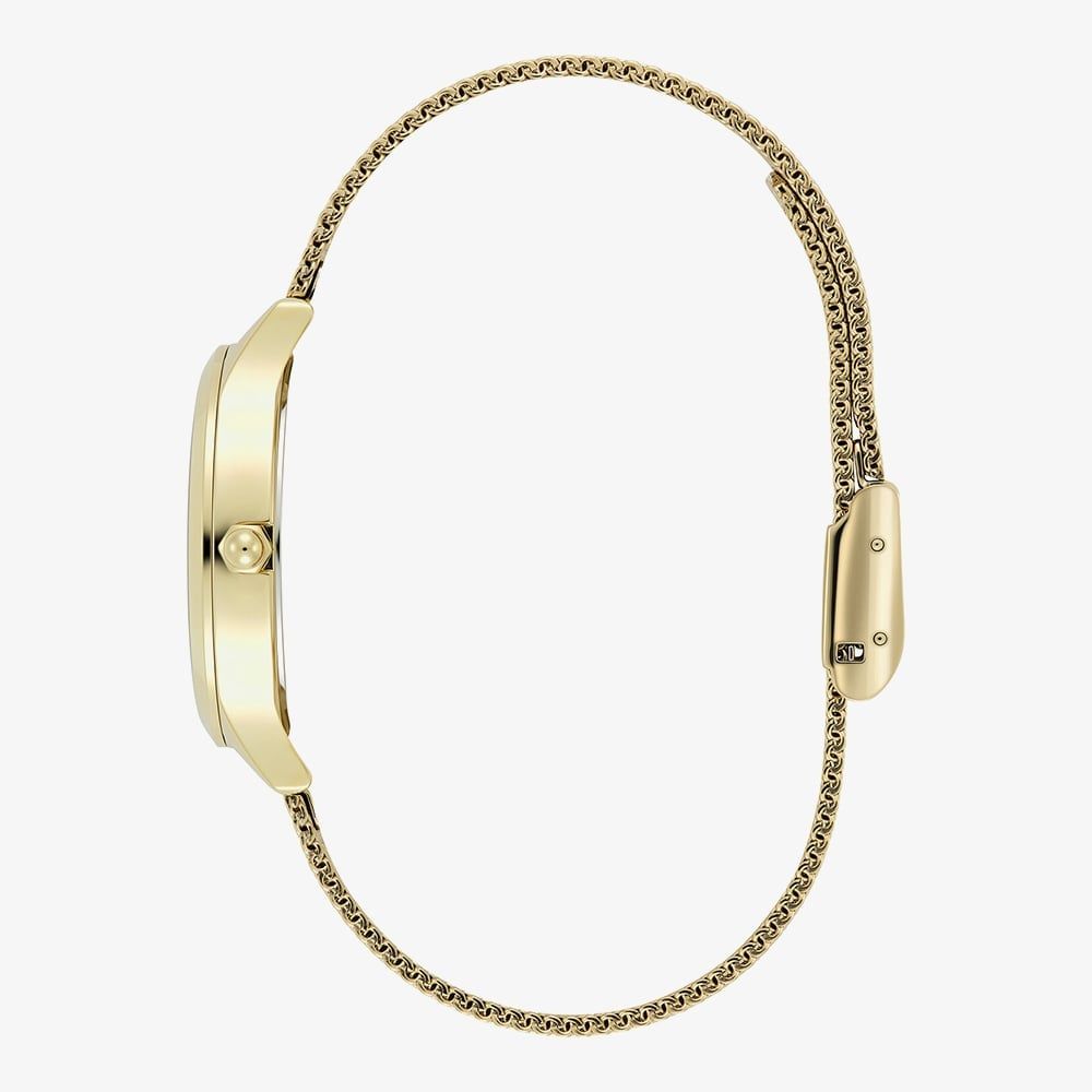 The Wonderlust joins our iconic Wonderland collection for a modern take on elegance. The glowing Ivory sunray dial is framed by our signature sunburst finish for added texture. There’s plenty of detail with crystal-set tracking and tiny golden minute markers around the outer edge. Teamed with a gold-plated case and contemporary mesh strap, this watch is a street style staple.