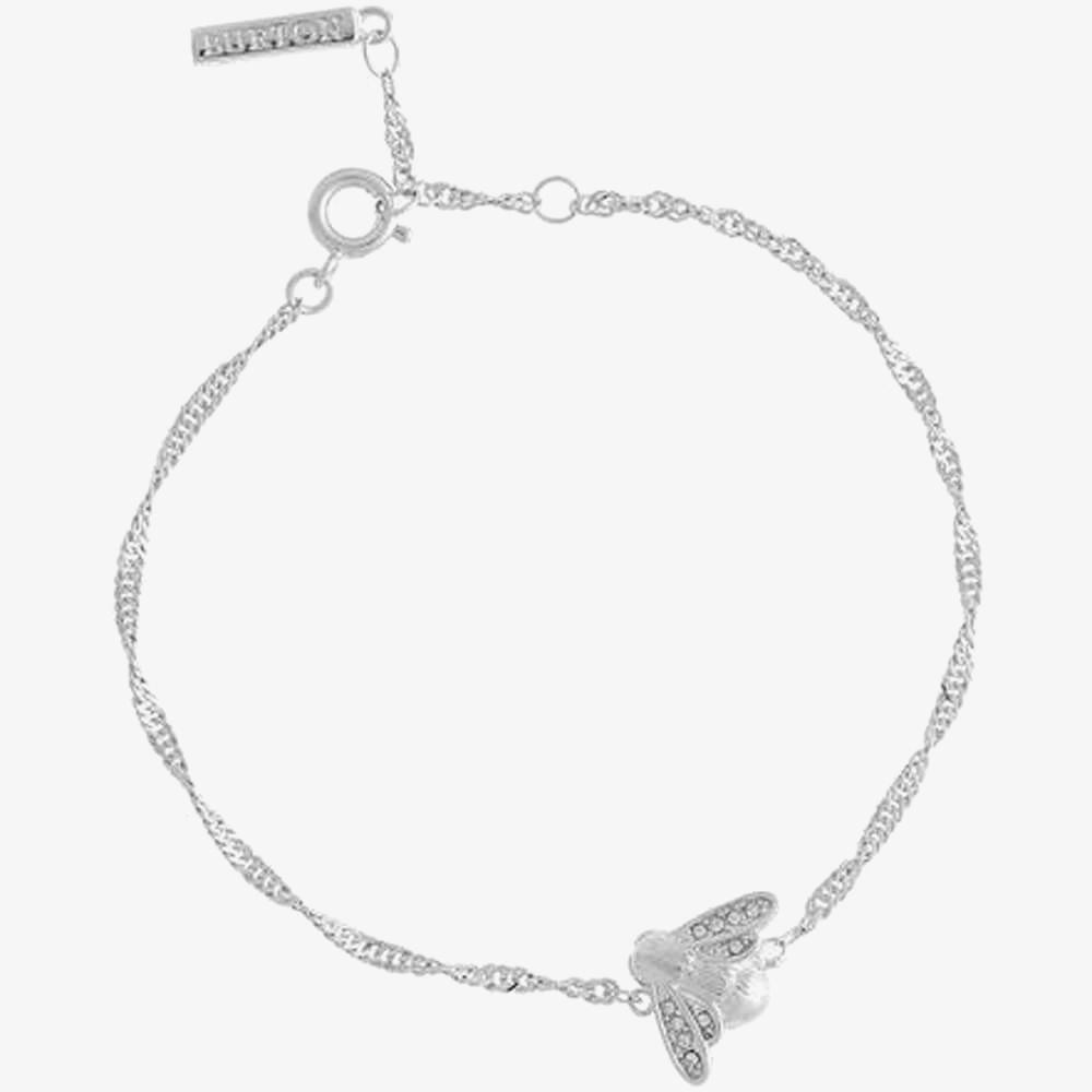 The Glitter Bee Vintage Twist Silver Tone Bracelet OBJAMB165 is bought to us from Olivia Burton. The elegant rhodium plated, silver tone twisted chain features a textured bee charm which has sparkling crystal embellished wings.