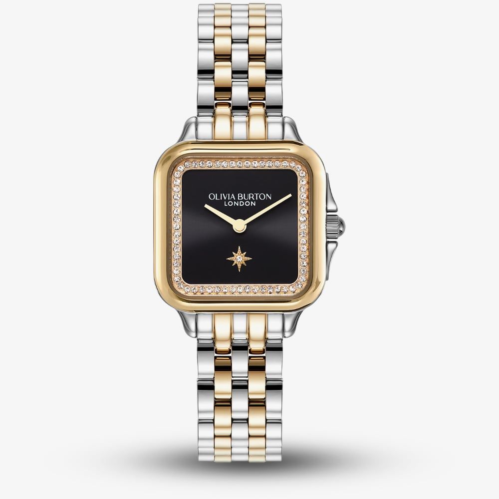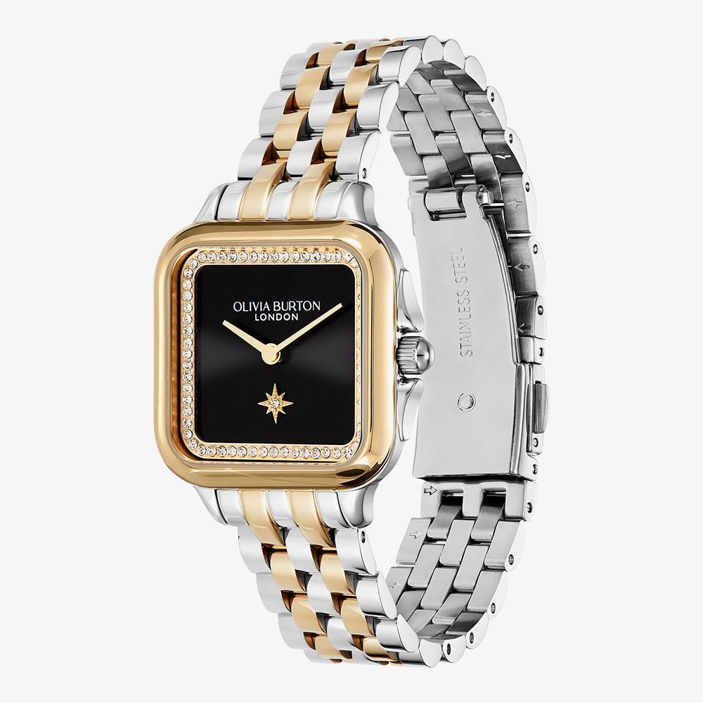Olivia Burton Grosvenor Two Tone Crystal Black Square Dial Watch 24000124