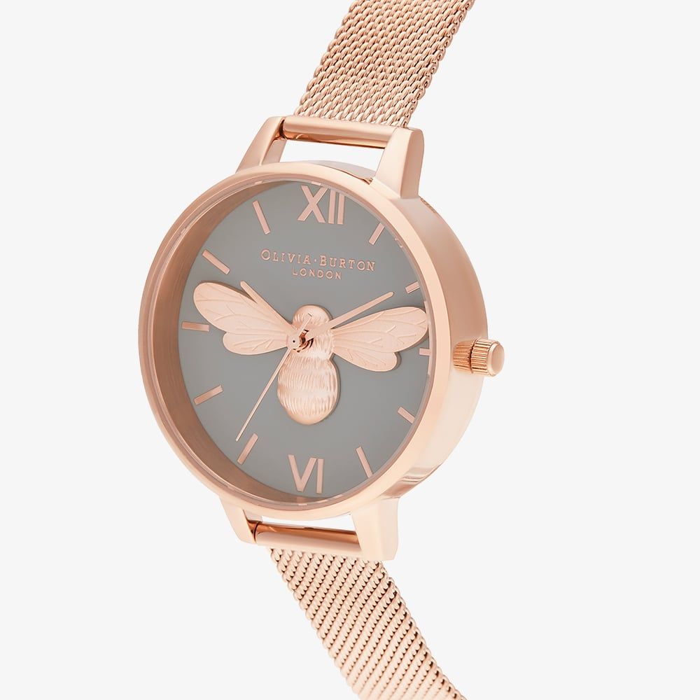 The Olivia Burton Ladies Lucky Bee Rose Gold Tone Watch is a graceful and stylish timepiece that blends vintage charm with modern elegance. Featuring a warm rose gold-tone case and mesh bracelet, this watch showcases Olivia Burton’s iconic 3D Lucky Bee at the centre of a soft blush sunray dial. Delicate and eye-catching, it’s a perfect accessory for adding a touch of femininity and sophistication to any outfit.