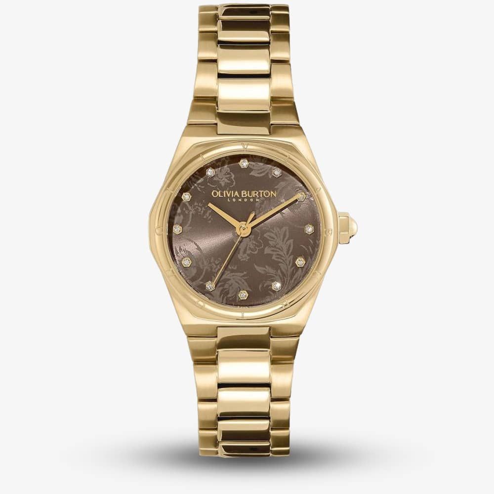 The Mini Hexa watch seamlessly blends the worlds of elegance and athleticism. The dial is inspired by timeless English interiors featuring an intricate floral print in the stylish mushroom hue, embellished with 12 crystal markers. It's a fusion of chic and sport, and you won't want to part with it.