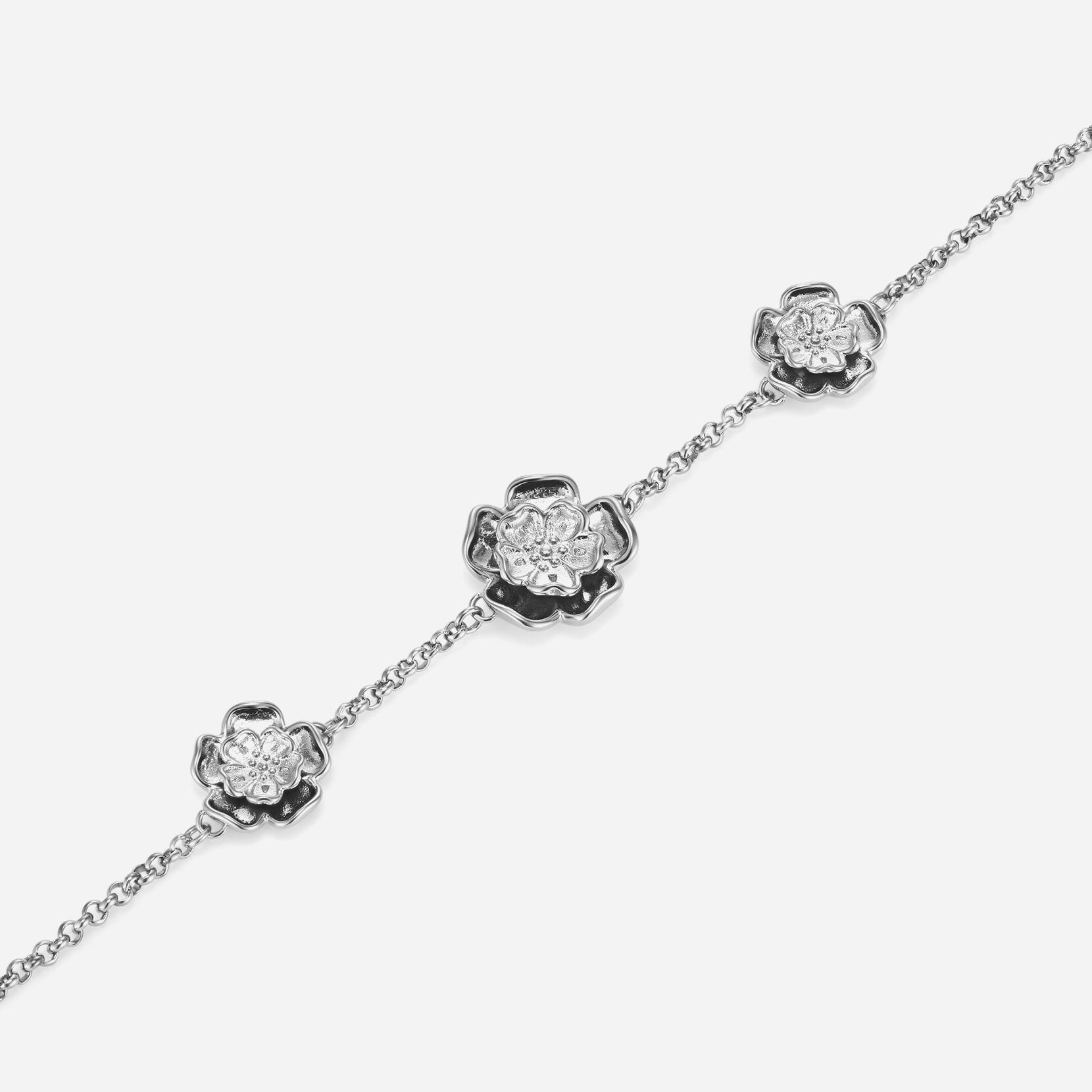 This elegant station bracelet showcases a trio of intricately etched floral crests with a polished silver finish. Rich in history and style, the Tudor Rose symbolizes the traditional emblem of England. Pair it with the Tudor Rose Pendant Necklace for a striking effect.