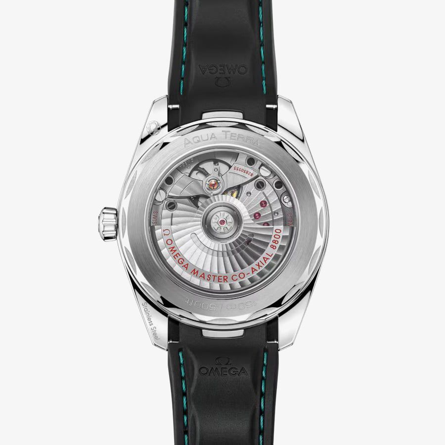 Ensuring a secure and comfortable fit, the watch is paired with an integrated black rubber strap, detailed with turquoise stitching and a fold over clasp. Inside, it houses OMEGA’s Co-Axial Master Chronometer Calibre 8800—certified by METAS for outstanding precision, performance, and resistance to magnetic fields.