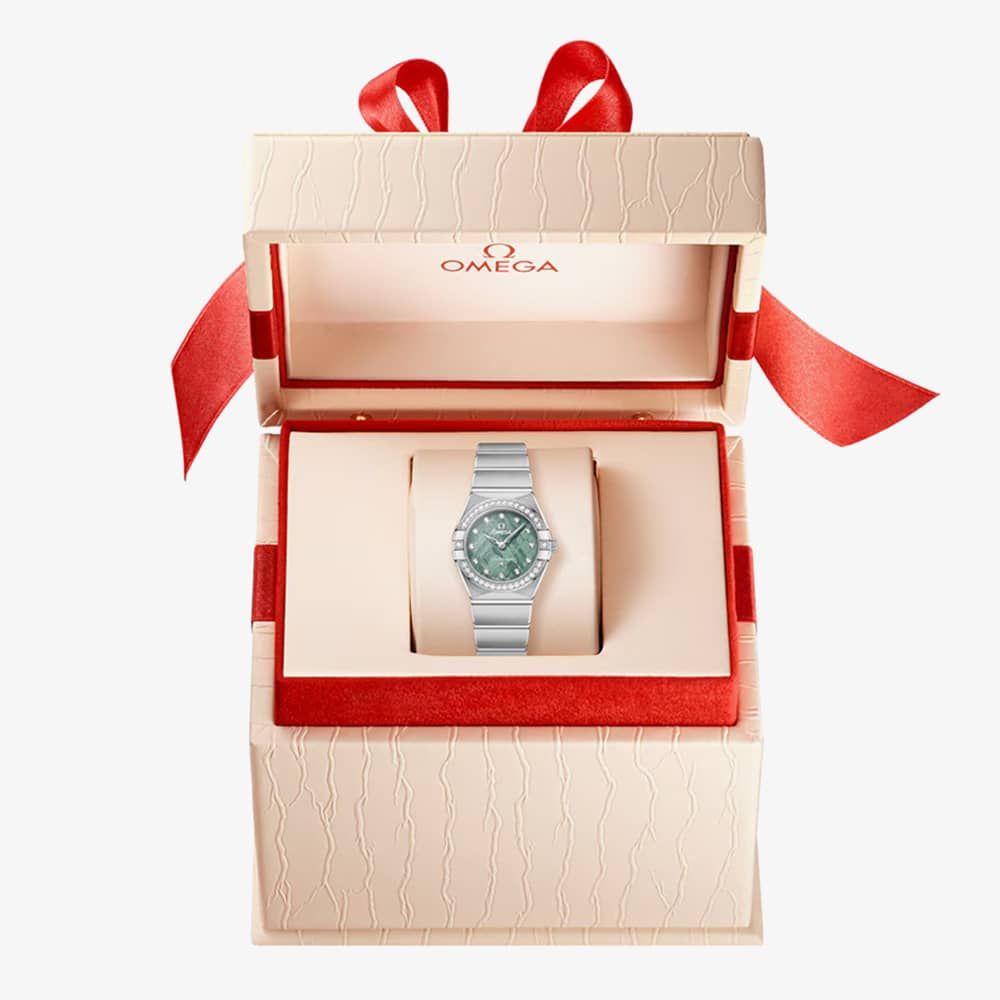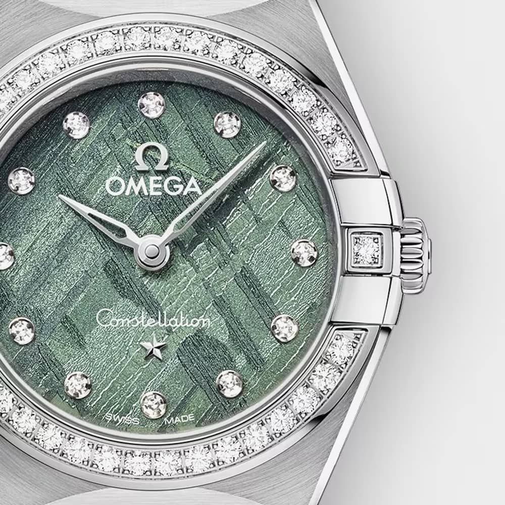 Since its inception in 1952, the OMEGA Constellation has drawn inspiration from the meticulous dance of the stars. In this exceptional rendition, the celestial motif takes centre stage with the introduction of a mesmerising meteorite dial. The remarkable dial is crafted from genuine iron meteorite, treated to achieve a captivating green hue. Each dial boasts a unique natural pattern, ensuring no two models are alike. Accentuated by diamond hour markers and an 18K white gold Constellation star, it exudes unparalleled elegance. Powering this remarkable watch is the OMEGA Calibre 4061, nestled behind the stamped Constellation Observatory medallion on the case back.