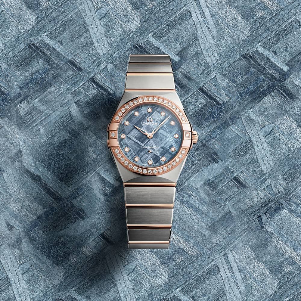 Since its inception in 1952, the OMEGA Constellation has drawn inspiration from the celestial choreography of the stars. With this special edition, the stellar motif is elevated further with the addition of a captivating meteorite dial. This timepiece showcases a case and mono-rang bracelet crafted from a combination of stainless steel and luxurious 18K Sedna™ Gold. It features iconic Constellation elements such as polished claws, half-moon facets, and a bezel adorned with shimmering diamonds.