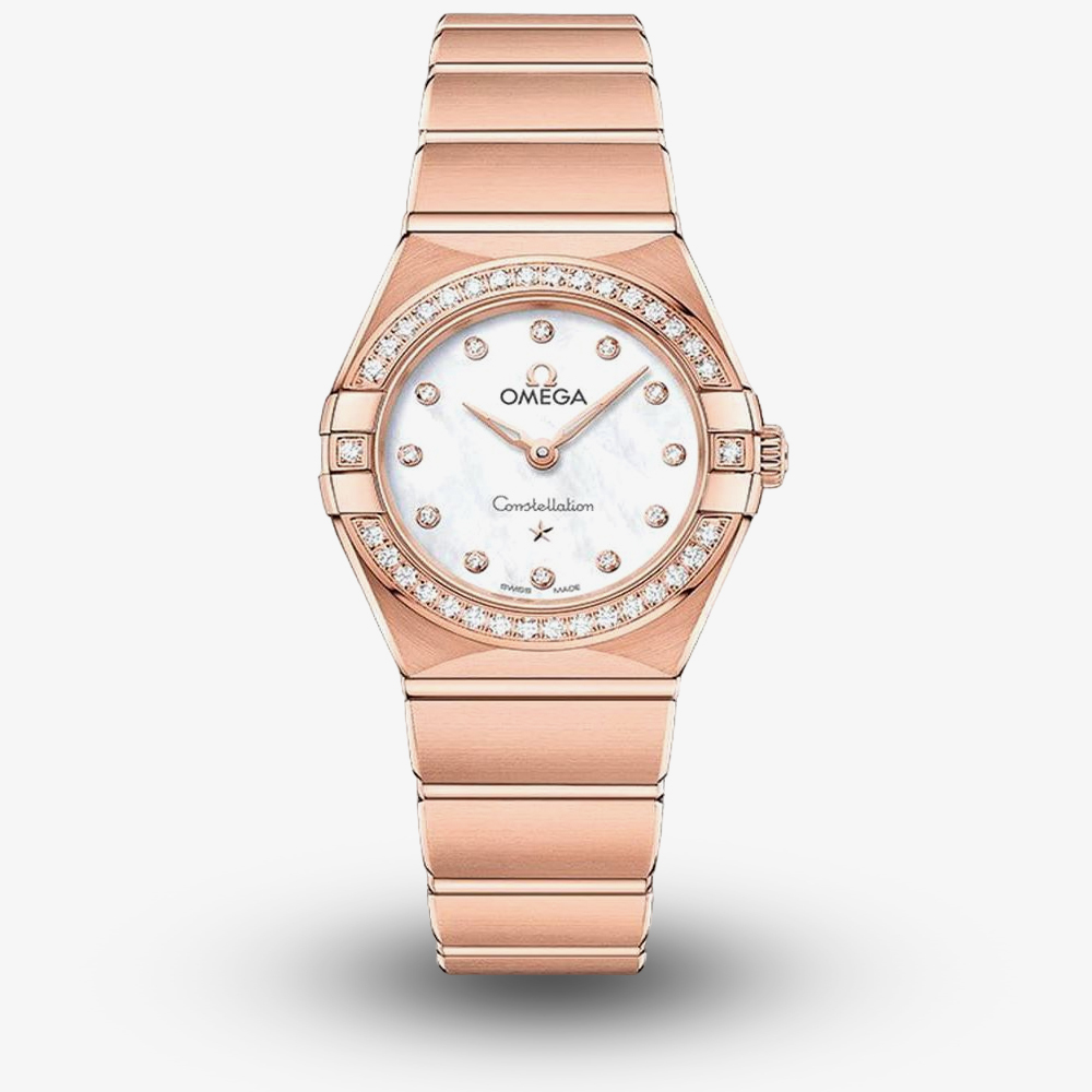 Crafted with a dramatic and enduring design, the OMEGA Constellation is characterised by its famous half moons, claws on the case and a mono-rang bracelet. This beautiful 18ct Sedna gold model features a white mother of pearl dial adorned with diamond hour markers, 18ct Sedna constellation star, indexes and an OMEGA logo. The watch dial is finished with scratch resistant sapphire crystal glass and a diamond set bezel.