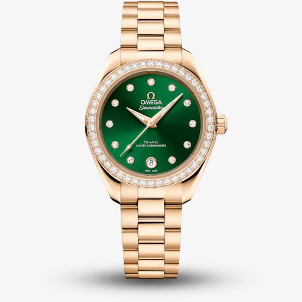 A sophisticated timepiece crafted from luxurious 18ct yellow gold, this watch is the perfect example of elegance and refinement. Its striking green dial adds a contemporary and vibrant touch, perfectly complementing the polished gold case. Engineered for precision and reliability, this timepiece is water-resistant up to 150 metres, making it as versatile as it is stylish. The iconic design features a sleek, clean dial with diamond hour markers, reflecting OMEGA’s commitment to timeless craftsmanship. Whether worn for formal occasions or daily wear, this watch combines luxury, performance, and enduring style, making it a standout addition to any collection.