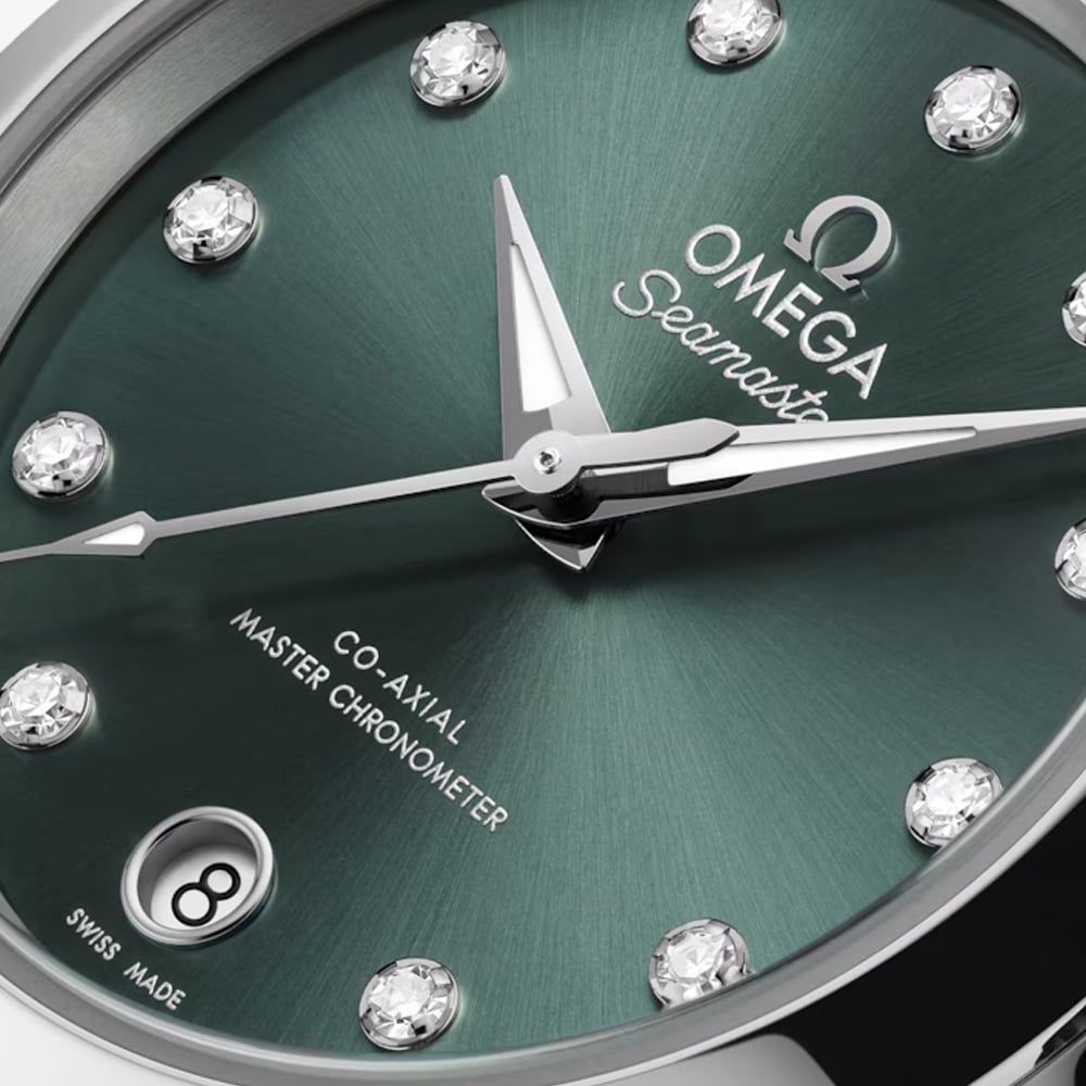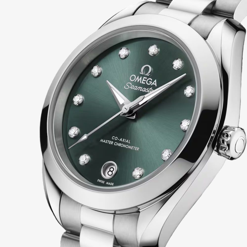 Boldly elegant and technically exceptional, this watch combines sporty sophistication with effortless style. Its striking pine green dial creates a vivid focal point, while diamond indexes add a signature luxury touch. The stainless steel case offers a sleek yet durable profile, while a matching stainless steel bracelet provides comfort and refinement. Water-resistant to 150 metres, this watch is designed for both active lifestyles and formal occasions.